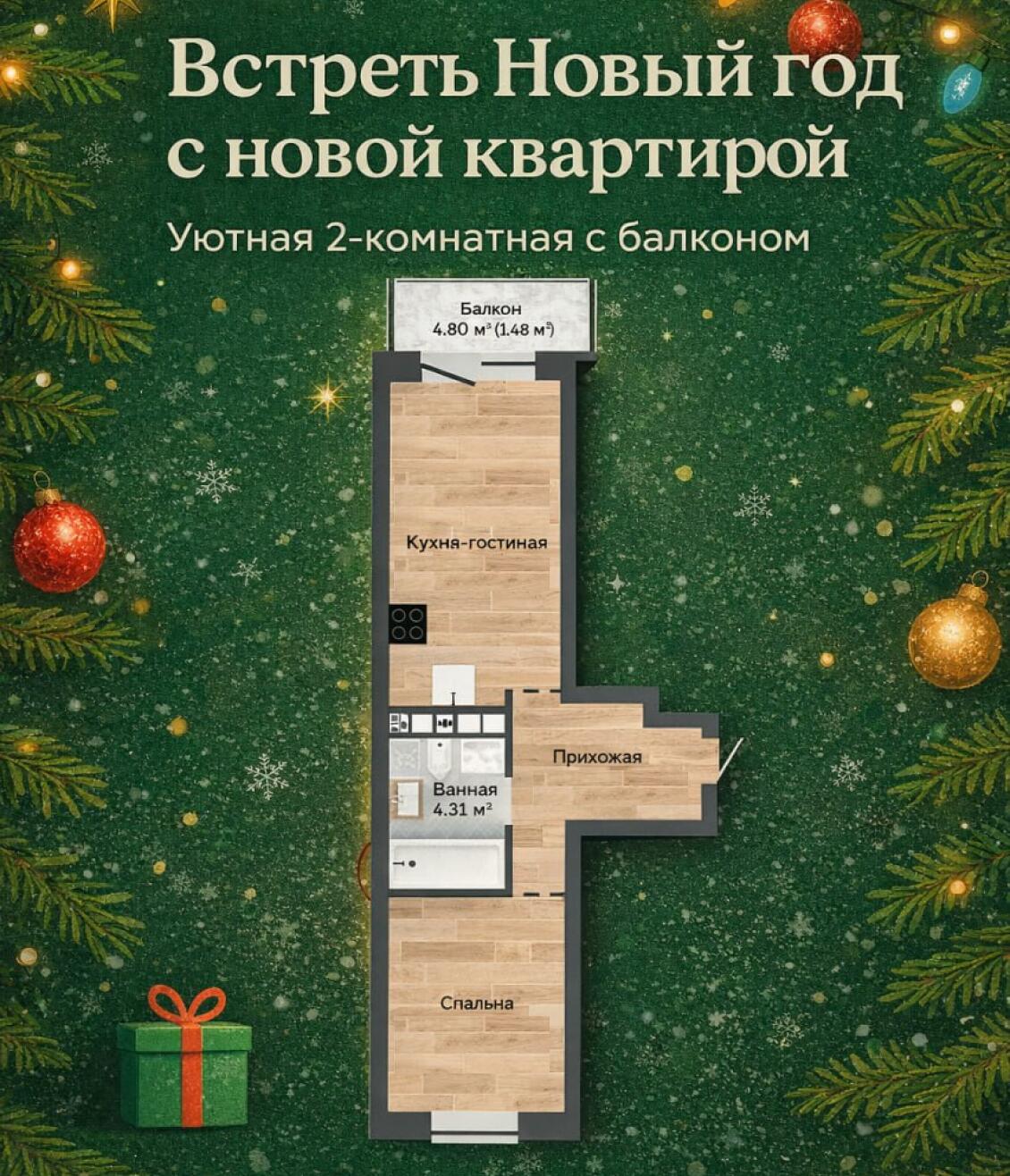 Формат: евродвушка - просторная кухня-гостиная + комната; состояние: без отделки, можно сделать ремонт под себя. Рассрочка от застройщика