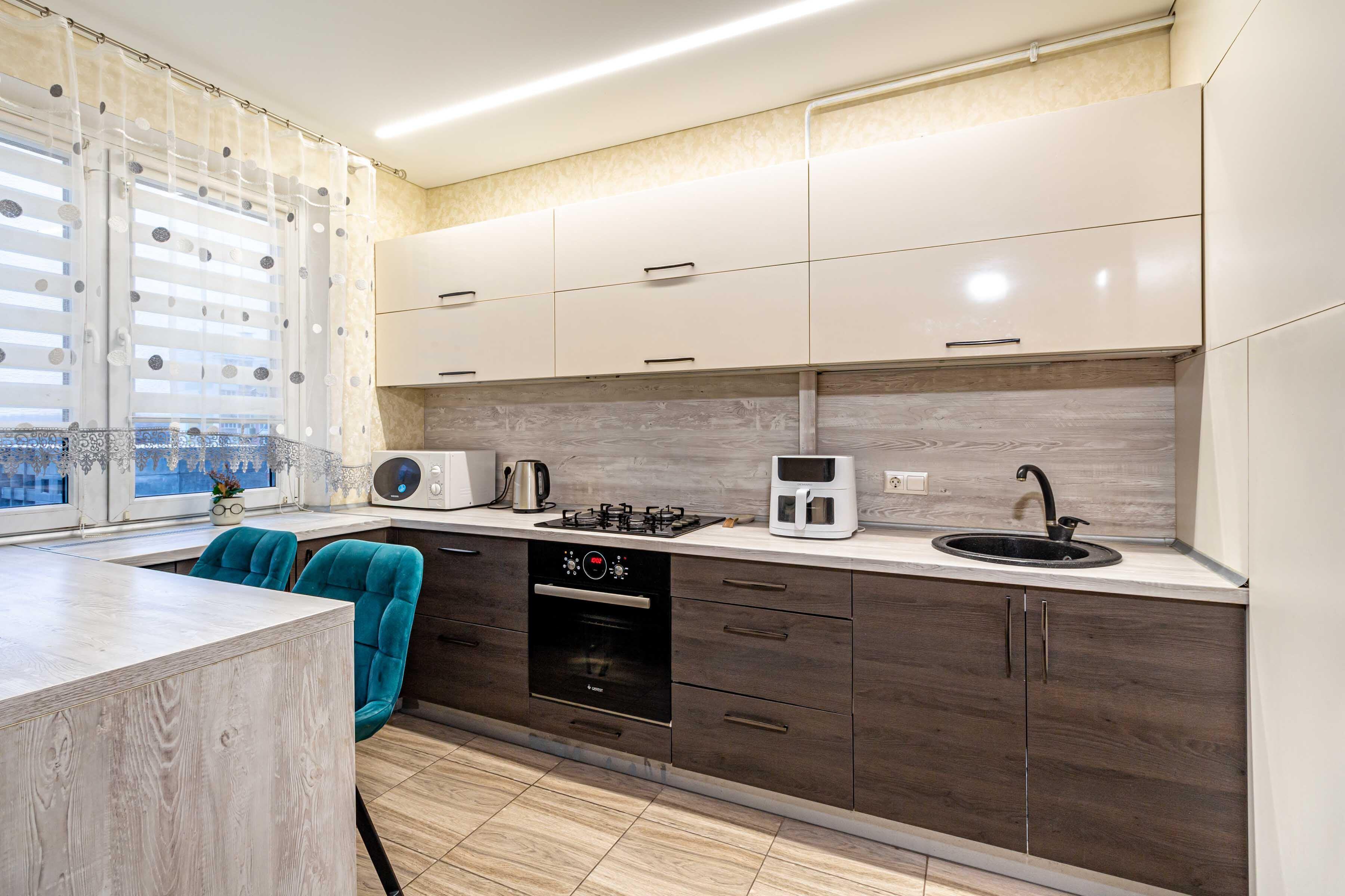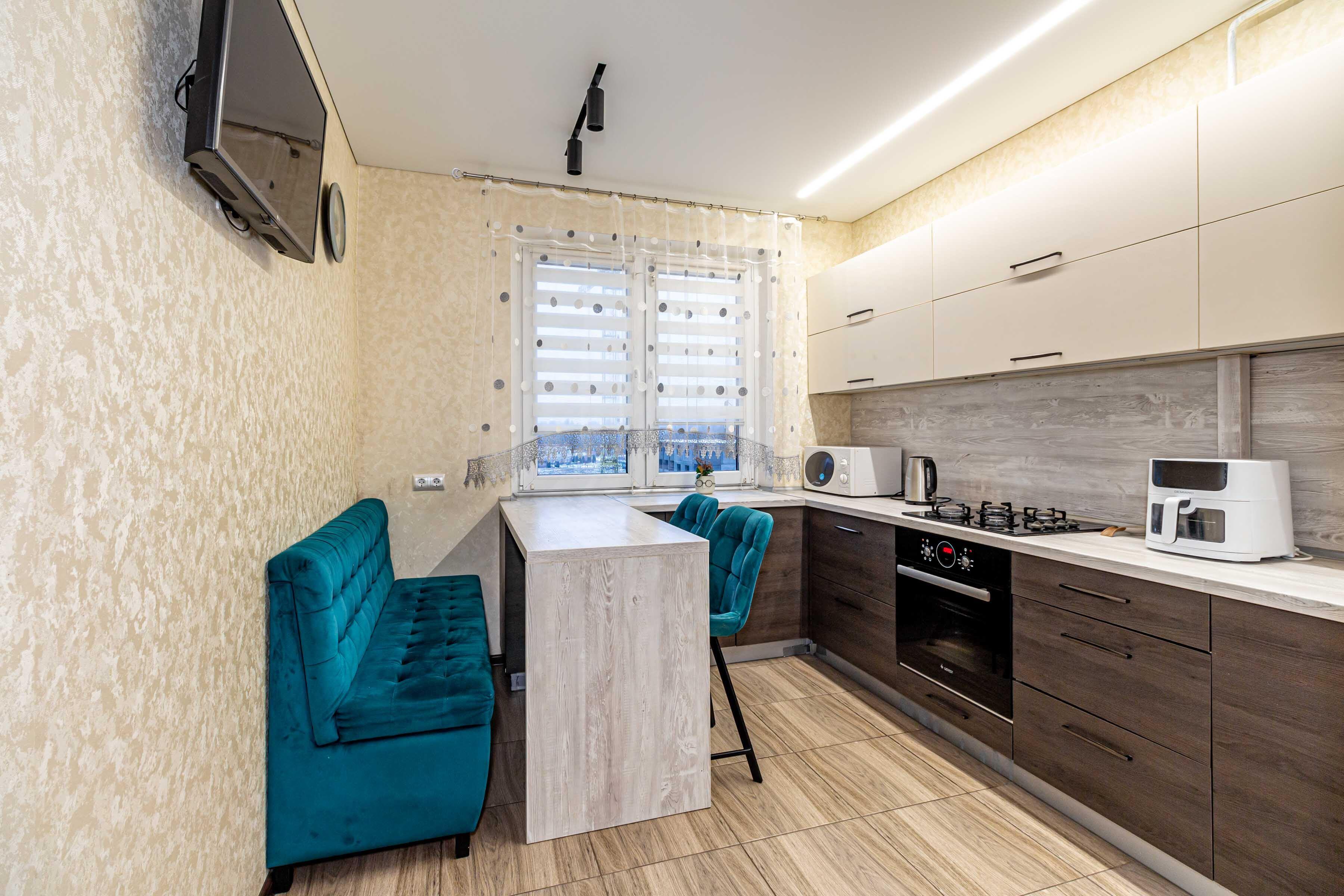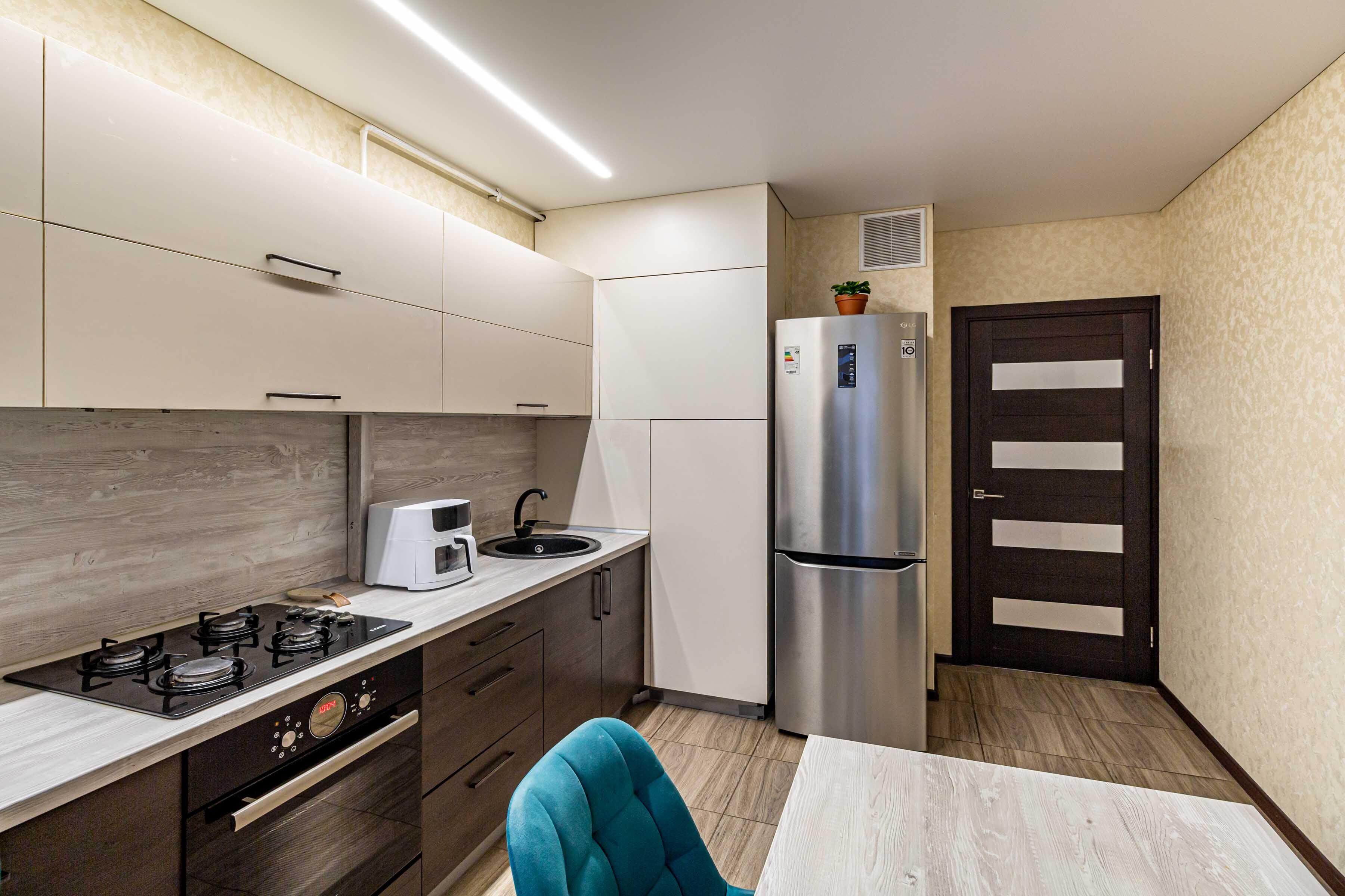 - Просторная кухня (11,2 м2) — полностью укомплектована мебелью и техникой