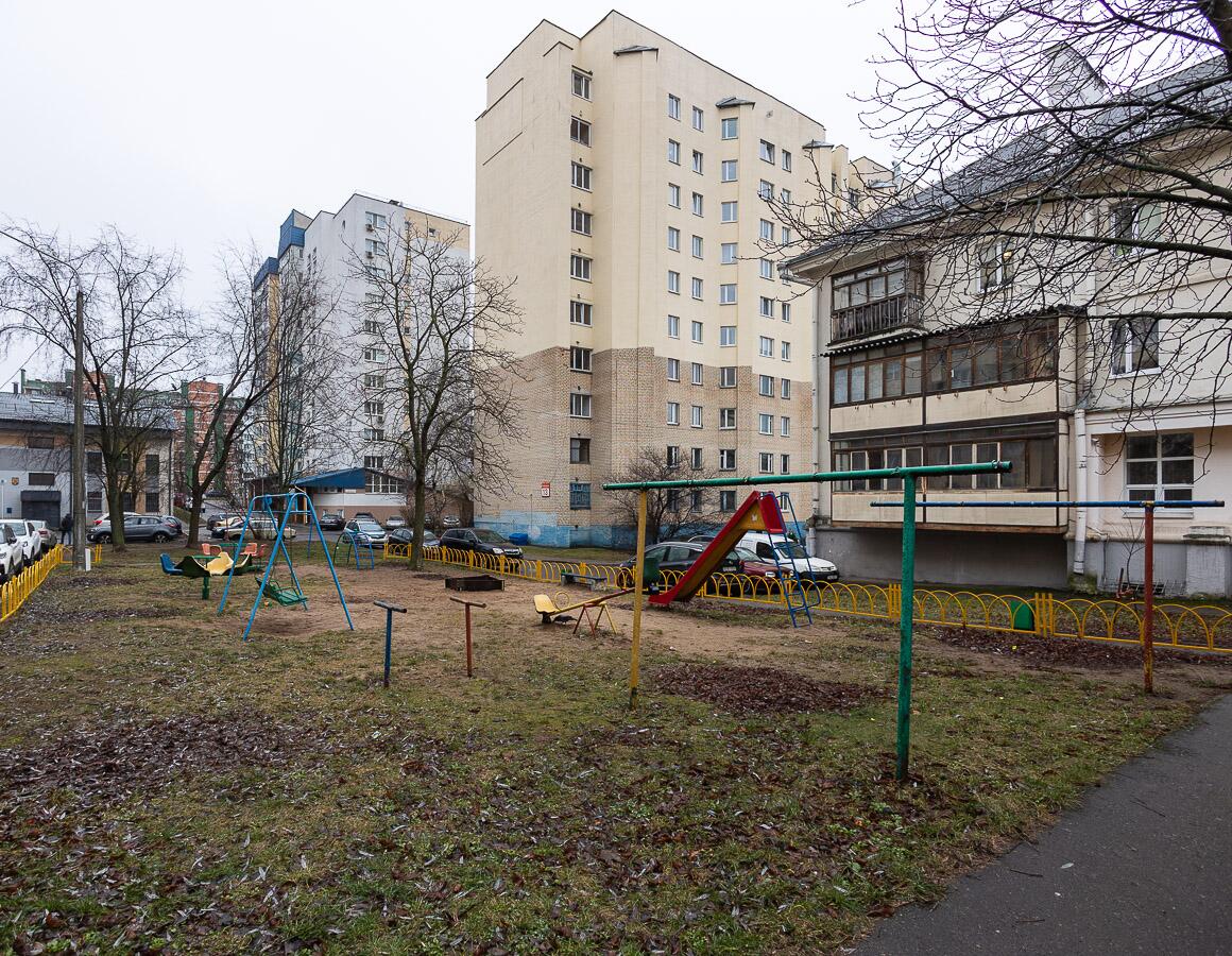 Квартира находится в центре Минска. Кирпичный дом 1988 года, просторная кухня 8,9 м, раздельный санузел, лоджия. В шаговой доступности гимназия №8, детский сад и школы. В непосредственной близости кафе, банк, медицинский центр «Лодэ». Возле дома остановка общественного транспорта, несколько остановок до «Комаровского рынка»