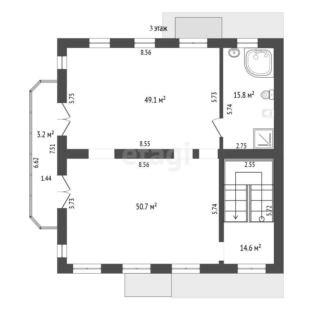 Общая площадь жилых помещений 754,4 м2 (377,1 м2 и 377,3 м2), жилая площадь 525,4 м2 (10 комнат).