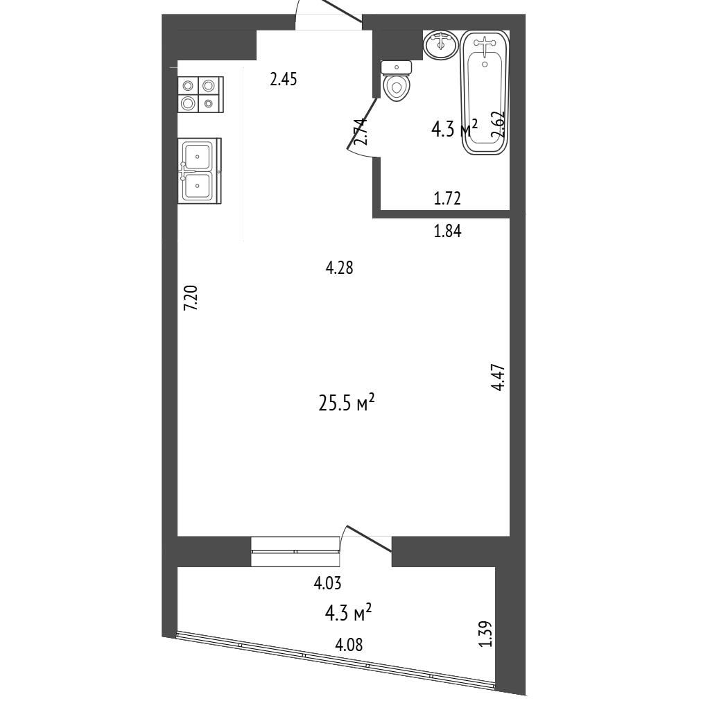 Площадь квартиры указана по СНБ. Общая площадь 29,8 м.кв.