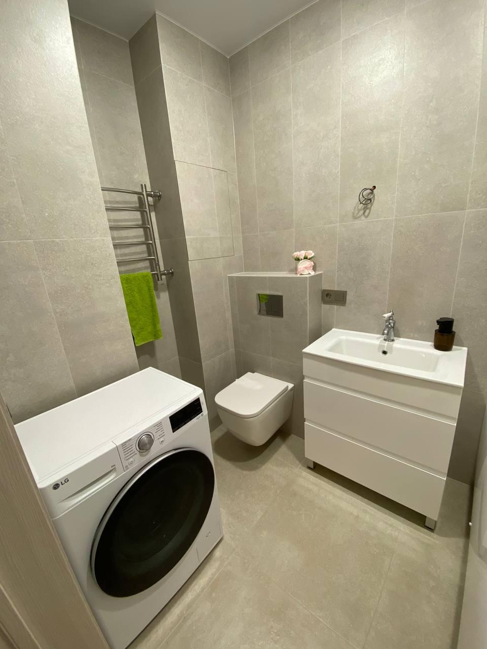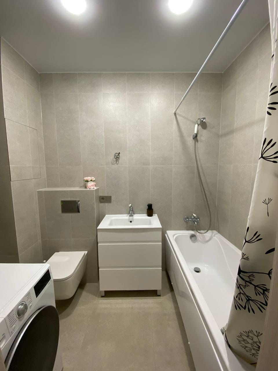 В санузле заменена сантехника, установлена немецкая фурнитура фирмы BRAVAT.