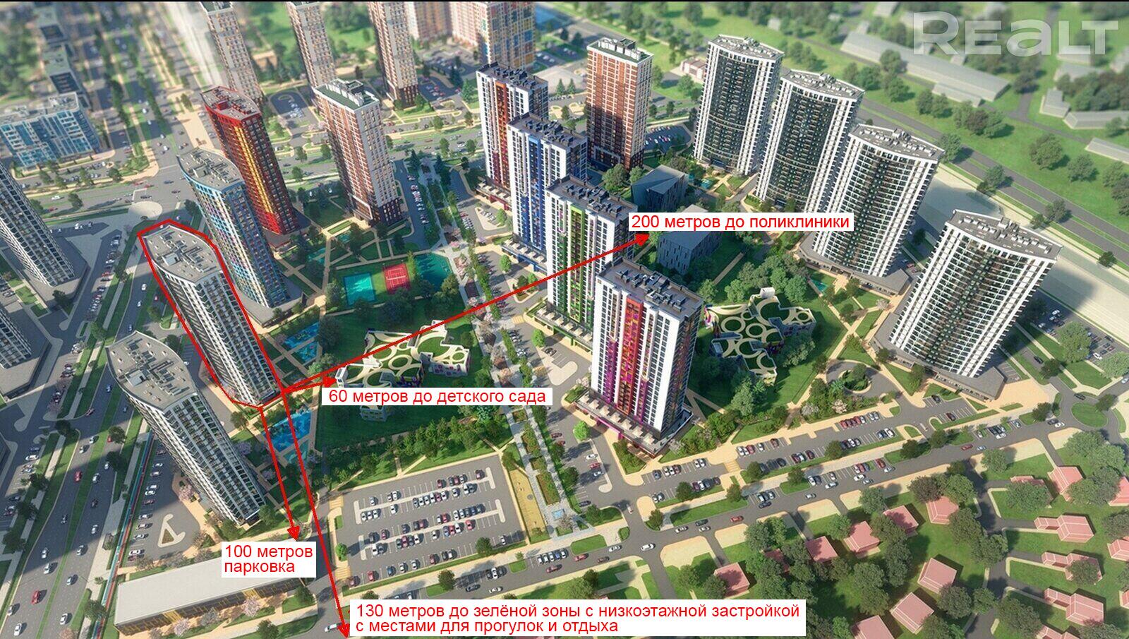 В пешей доступности также появятся школы (ближайшая запроектирована в 200м от дома через дорогу в соседнем квартале) и детские сады, ещё одна поликлиника, магазины и жемчужина комплекса – Международный финансовый центр (всего около 600м от дома)! Финансовый центр будет крупнейшим в Республике и около него станция метро «Аэродромная». Станция метро в пешей доступности, около дома остановка общественного транспорта, 10 минут до центра города, удобный выезд на МКАД - легко добраться в любую точку города.