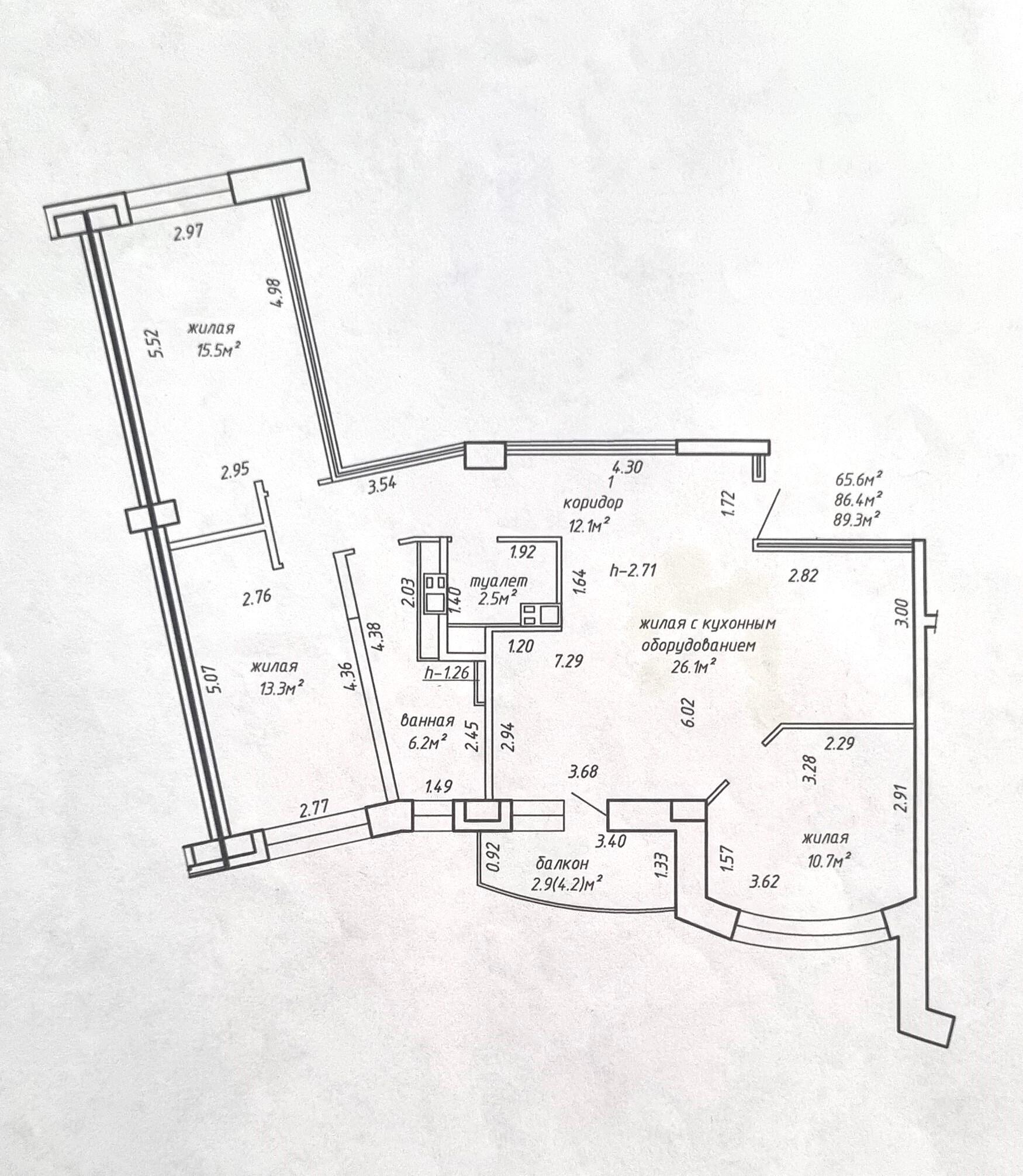 Площадь по СНБ 89.3 кв. м.