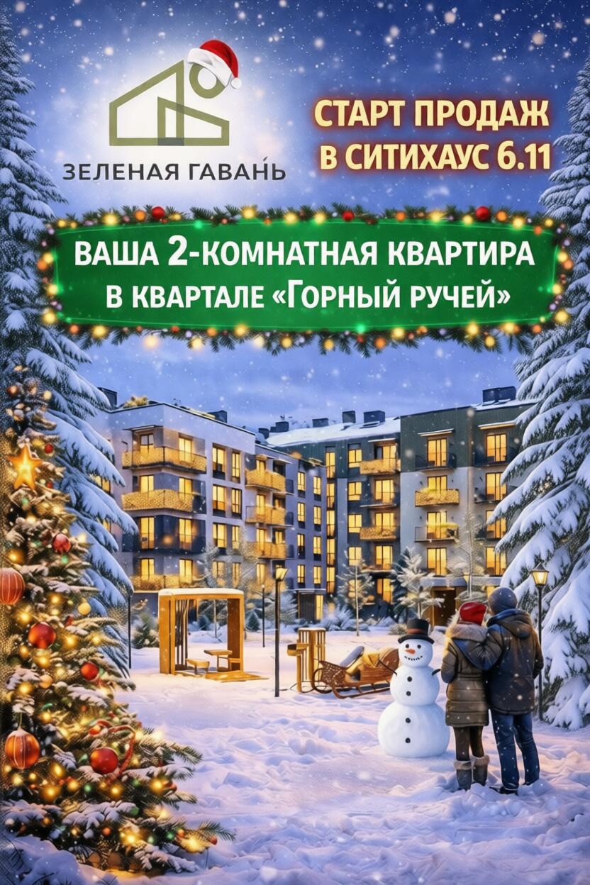 Старт продаж! Зимний вайб Зеленой Гавани, сосны за окном и своя 2-комнатная квартира!