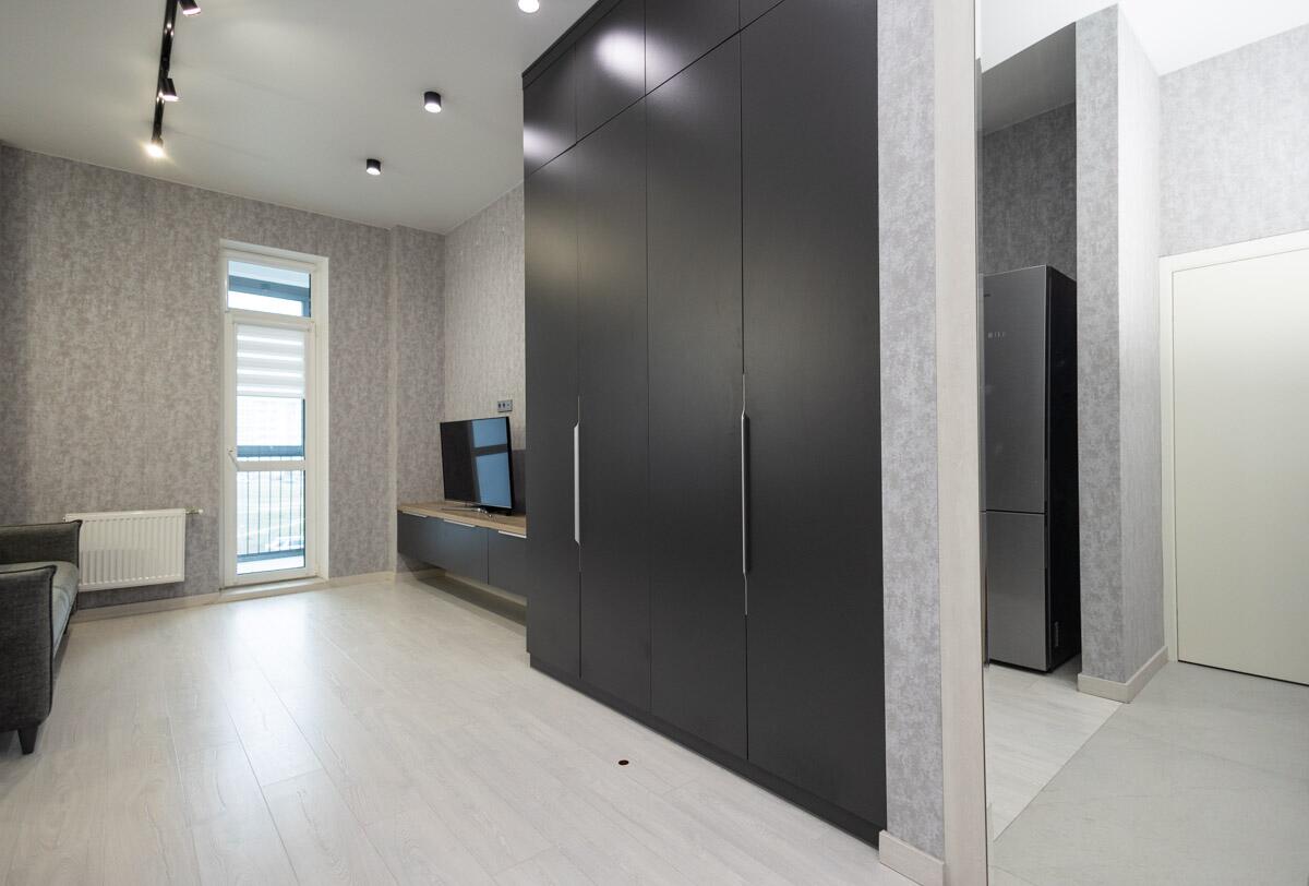Современная однокомнатная квартира-студия с отличным евроремонтом в доме повышенной комфортности полностью мебелирована.