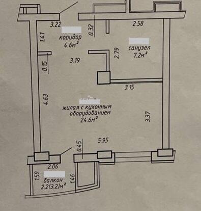 Площадь: по СНБ — 38,6 м2/общая — 36,4 м2