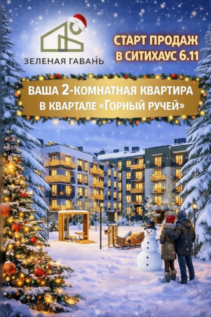 Старт продаж! Зимний вайб Зеленой Гавани, сосны за окном и своя 2-комнатная квартира!