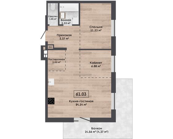 Площадь61.03 м2