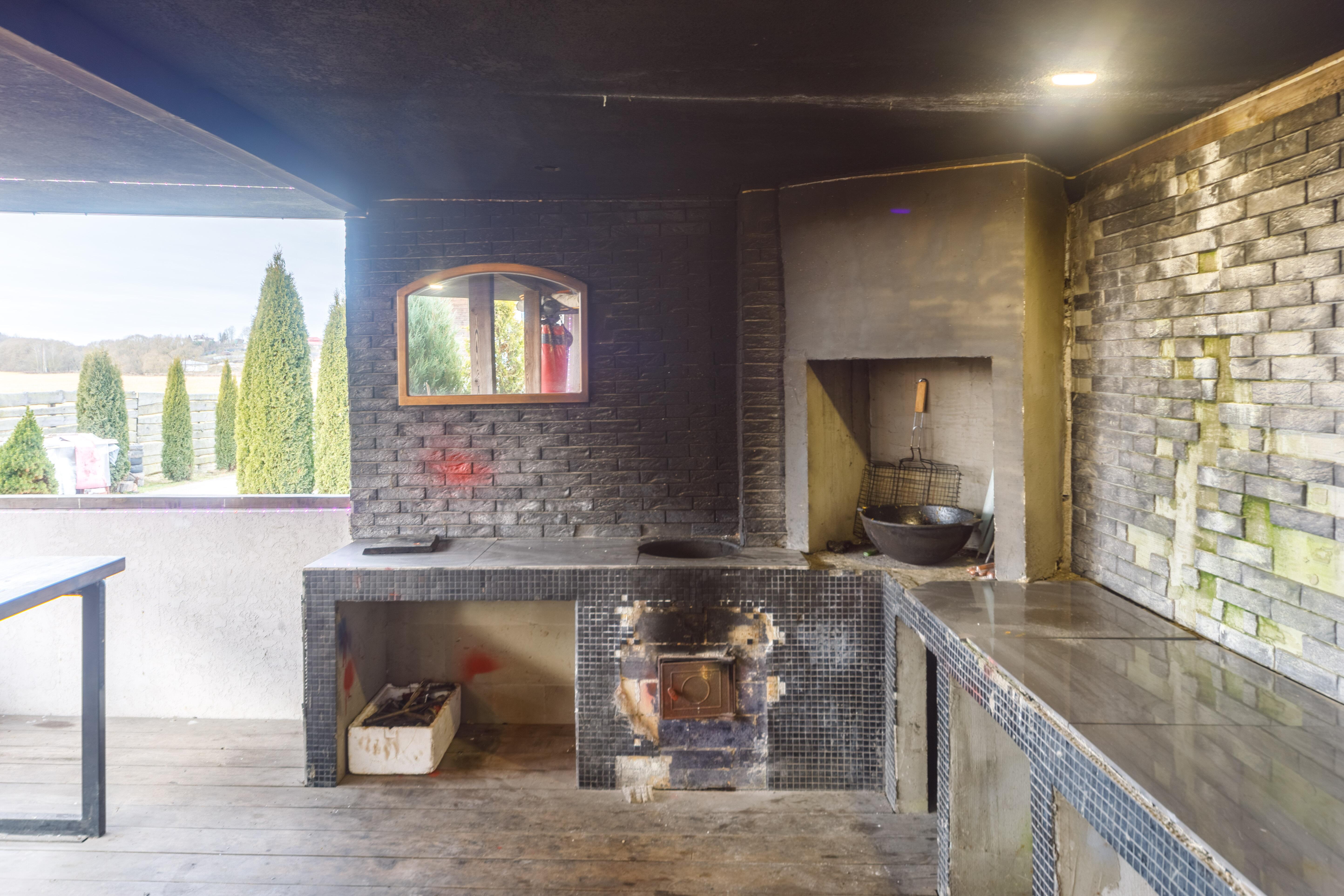 На участке также расположена большая оборудованная зона барбекю, газон, элементы ландшафтного дизайна, а также уложенная плиткой парковка на более чем 6 машиномест.