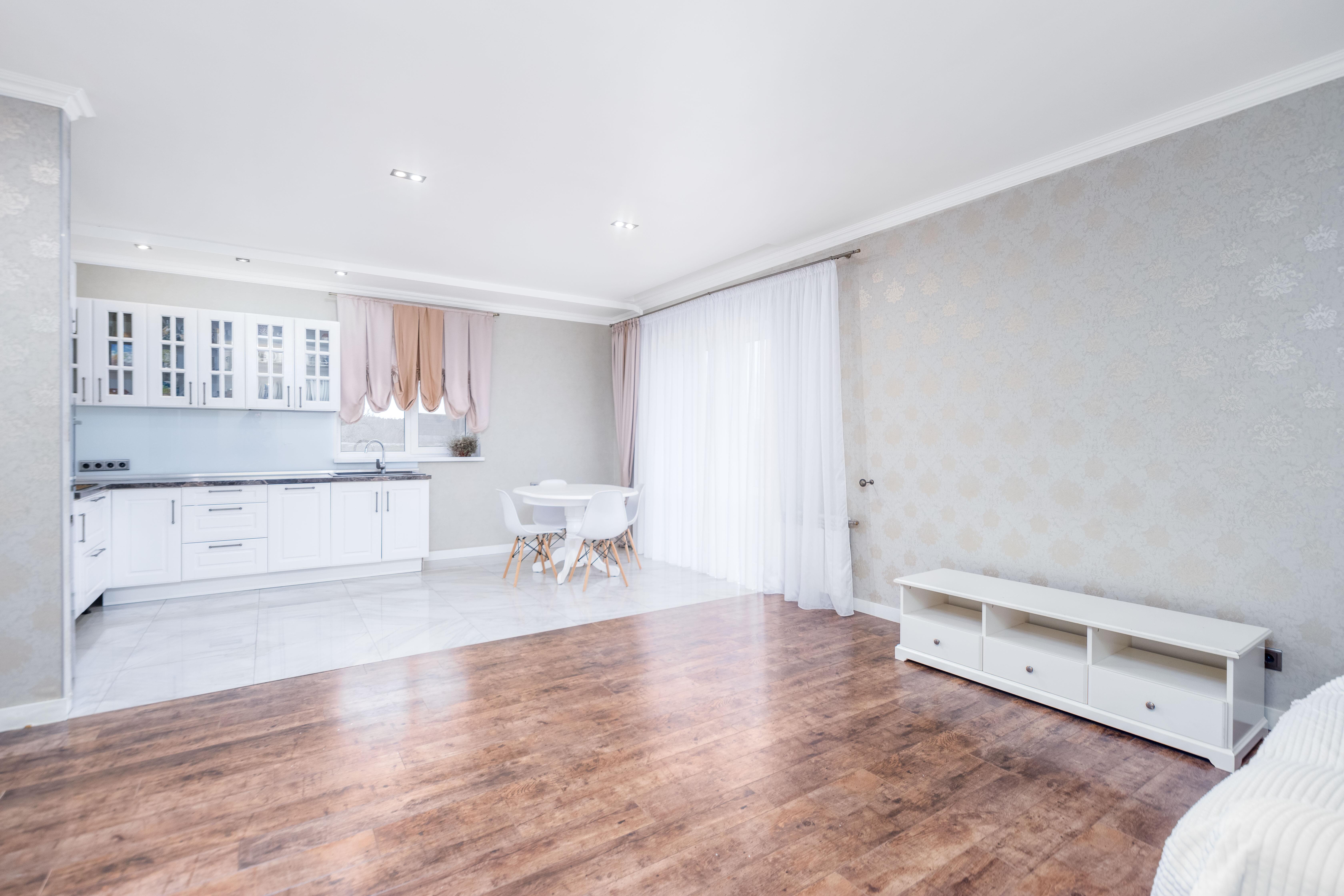 Таунхаус разделен на две 3-комнатные квартиры с оборудованной кухней, гардеробной и 2 санузлами. Подключено электроотопление. Покрытие пола: плитка (теплый пол), ламинат.