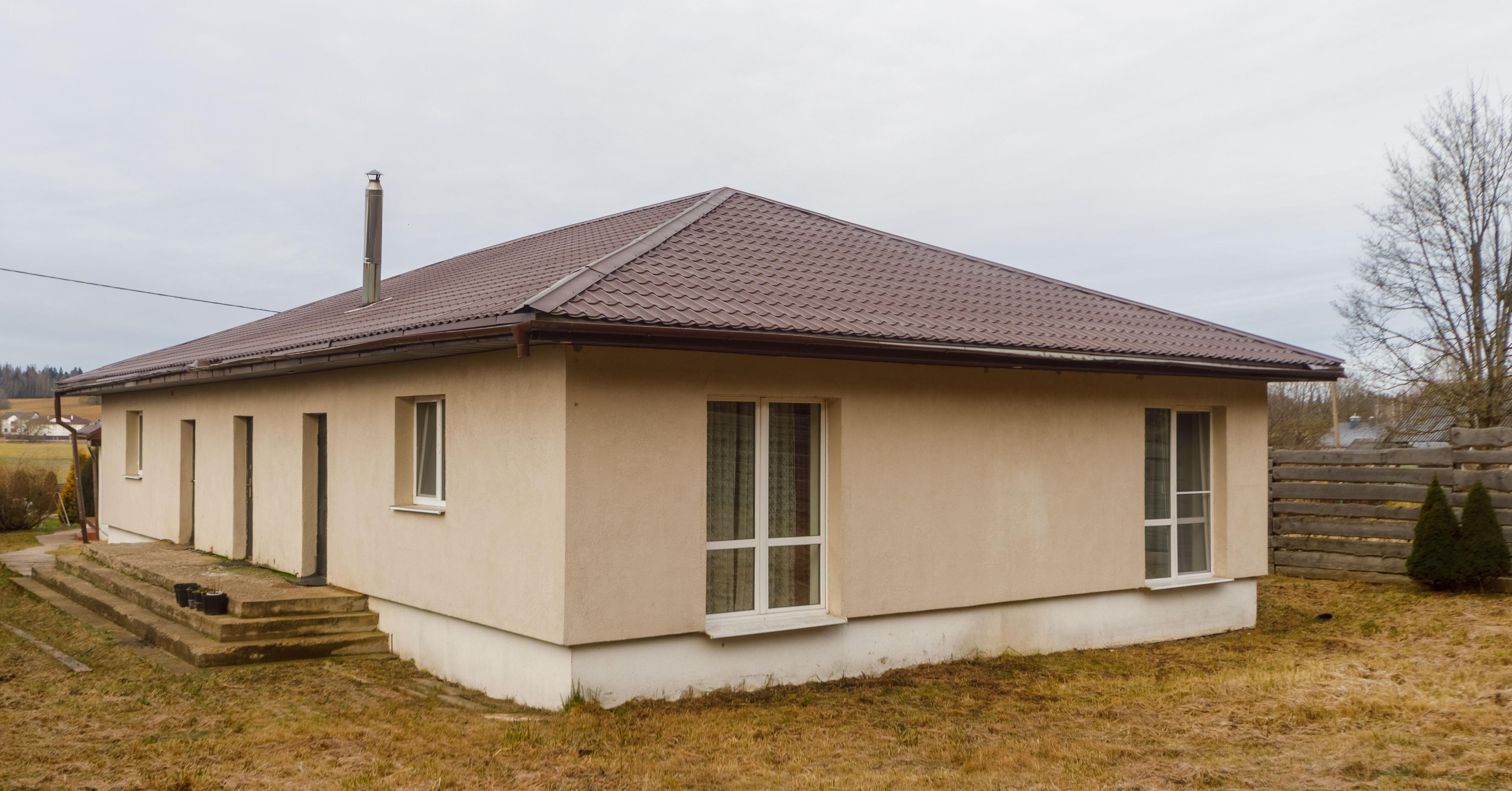 Оба дома выполнены из газосиликатных блоков, оштукатурены и покрашены. Крыша из металлочерепицы.