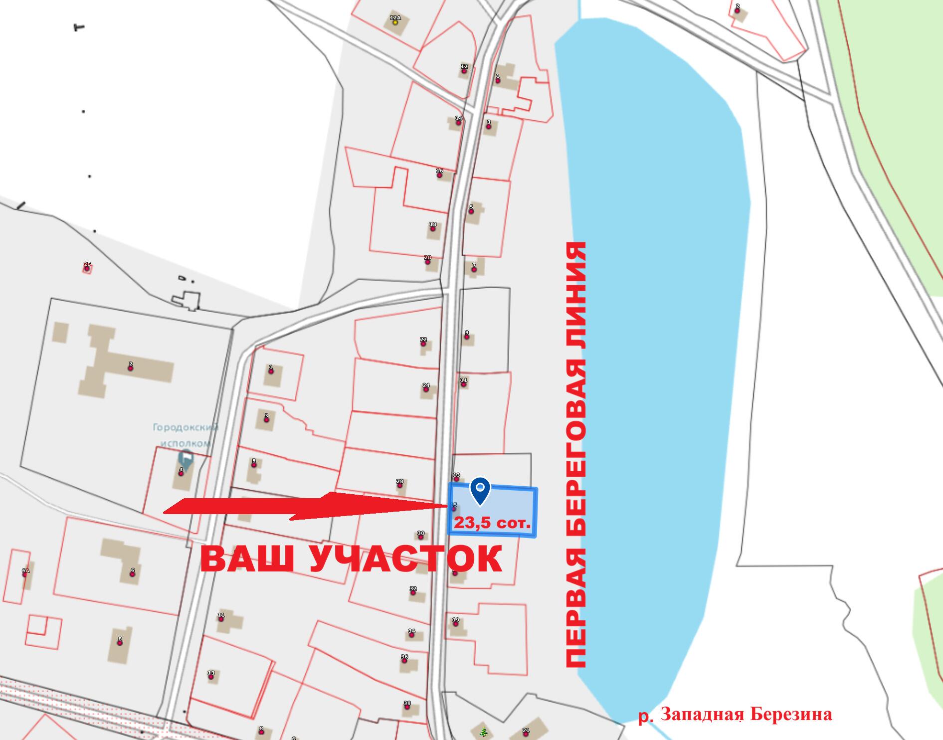 Участок площадью 23.5 сотки в агрогородке Городок расположен на первой береговой линии реки Западная Березина. Ровная прямоугольная форма территории с небольшим уклоном оптимальна для строительства, а асфальтированный подъезд обеспечивает доступность в любую погоду. Ключевые коммуникации находятся в непосредственной близости: по улице проходит газ, доступно подключение к центральному водопроводу, также существует возможность организации отопления с помощью электрического котла. Главное преимущество — прямой выход к воде, который открывает не только живописные панорамные виды, но и возможности для рыбалки и отдыха у собственного берега. Поселок обладает развитой инфраструктурой для постоянного проживания, включая школу, детский сад, фельдшерско-акушерский пункт, дом культуры и школу искусств. Исторический колорит месту придает расположенная поблизости водяная мельница. Удачное сочетание природной ценности, готовой инженерной схемы для подключения и социальной обеспеченности делает этот участок практичным выбором для строительства капитального дома для жизни или долгосрочных инвестиций. Объект предлагает баланс между спокойствием загородной жизни у воды и всеми необходимыми удобствами цивилизации.