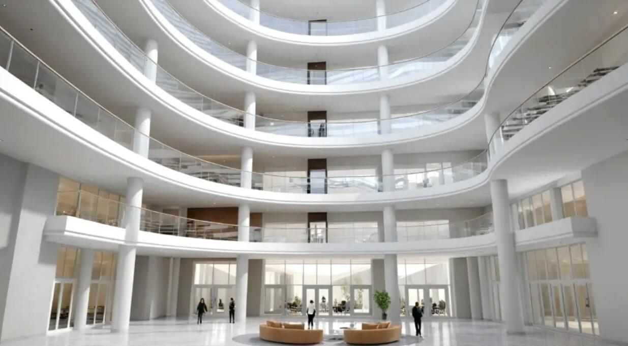 Зеленая парковая зона, международный финансовый центр и крупнейший торговый центр Авиа Молл в центре комплекса.