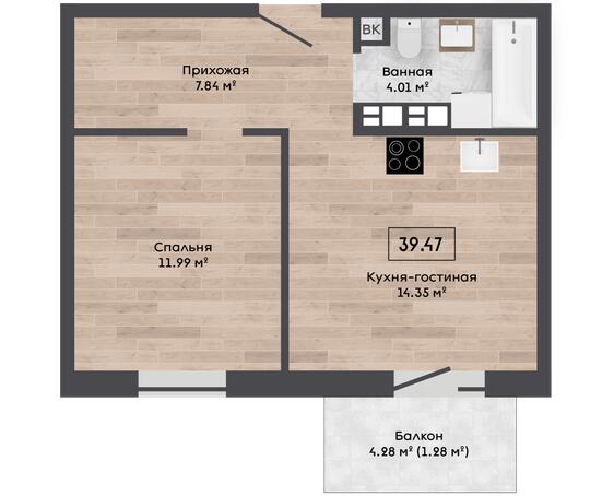 современная планировка «евроформата»: просторная кухня-гостиная + отдельная спальня;