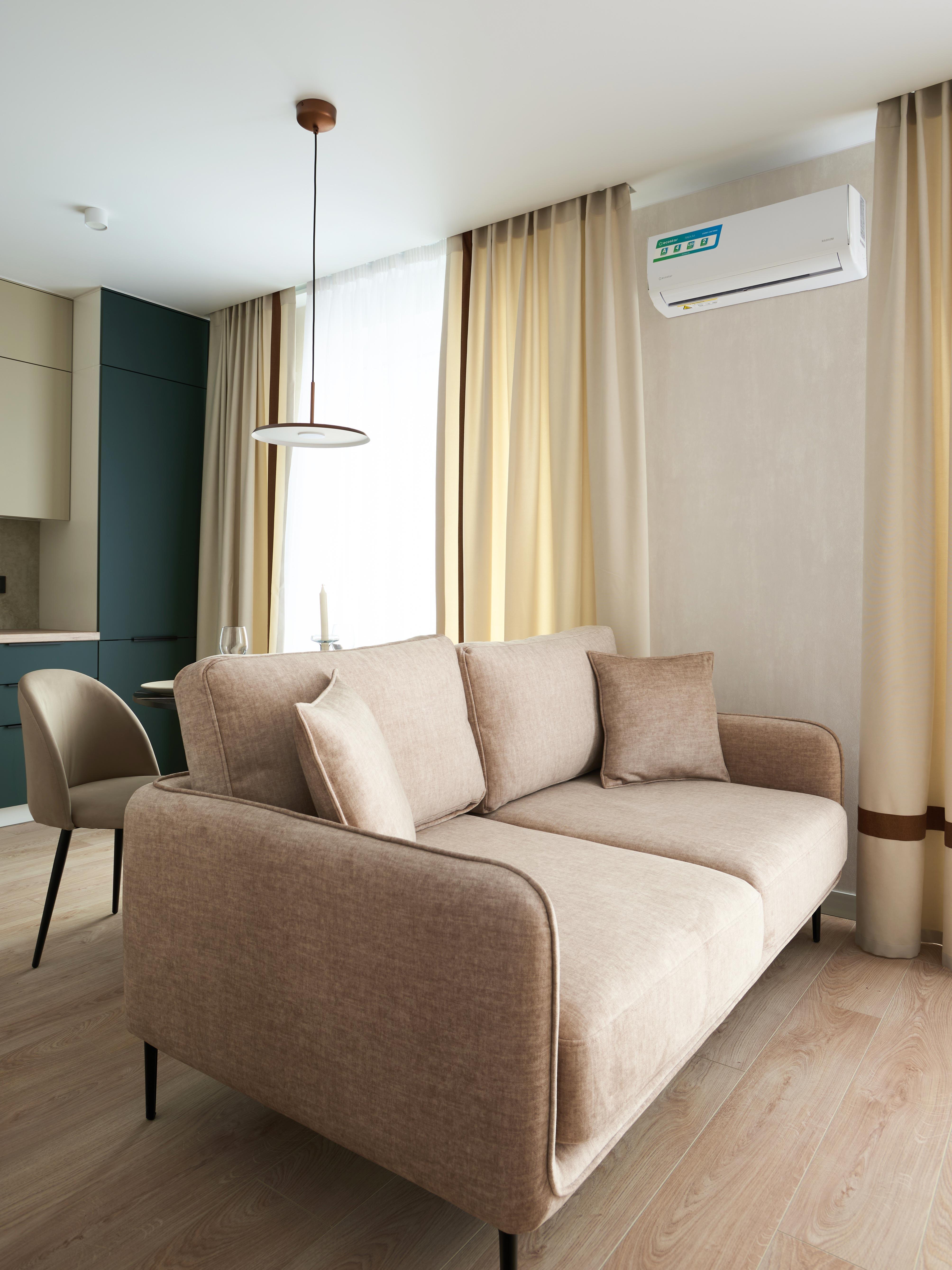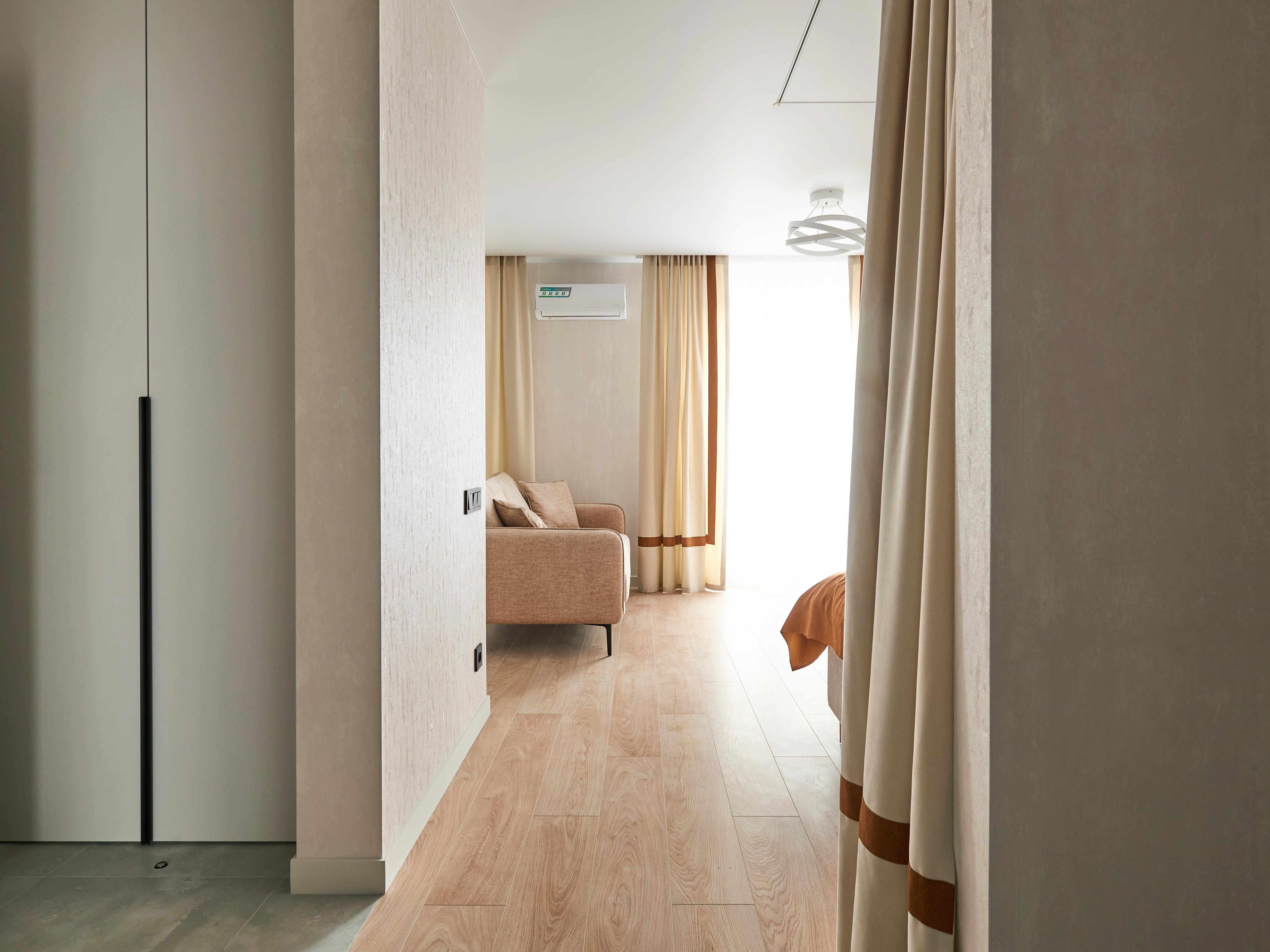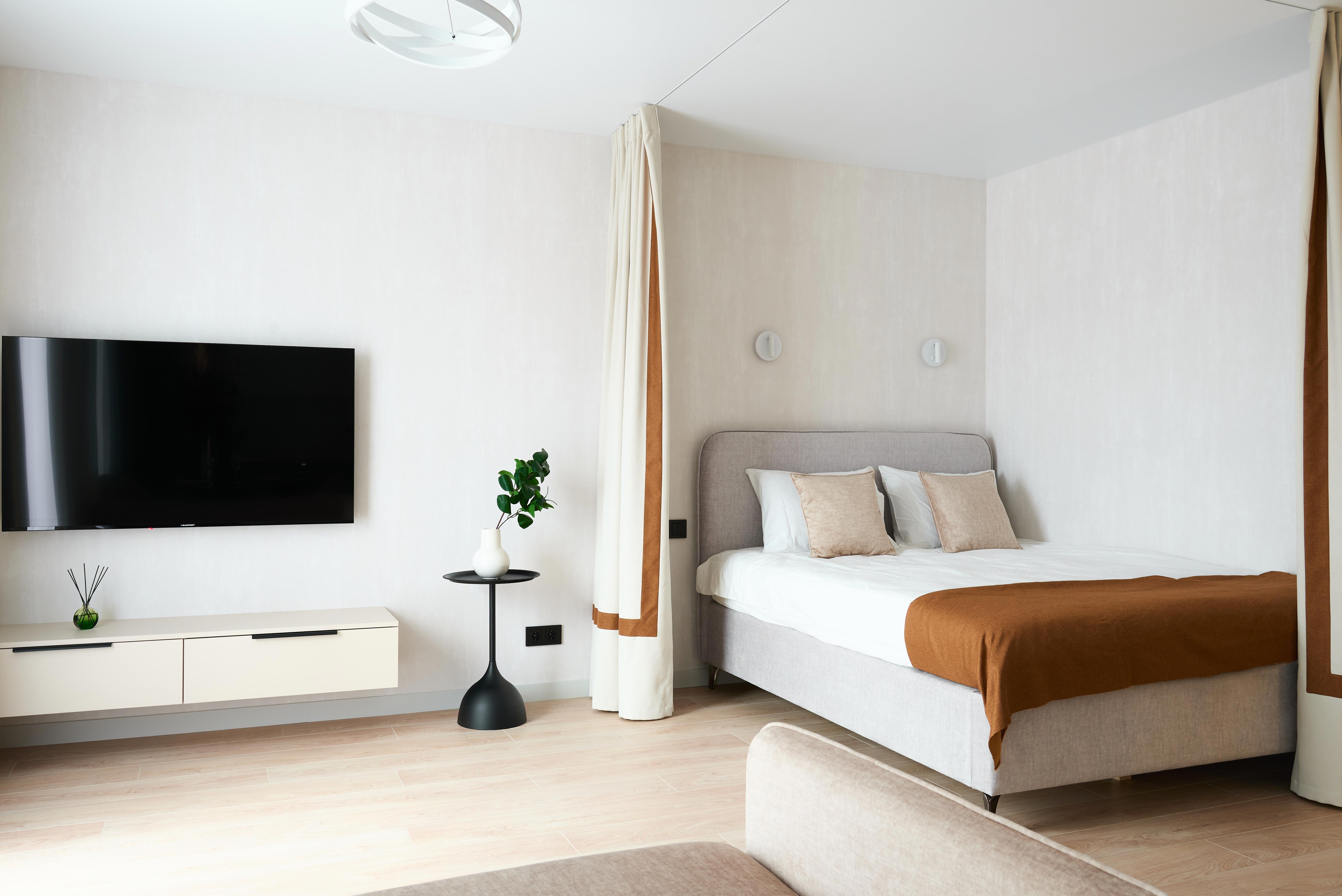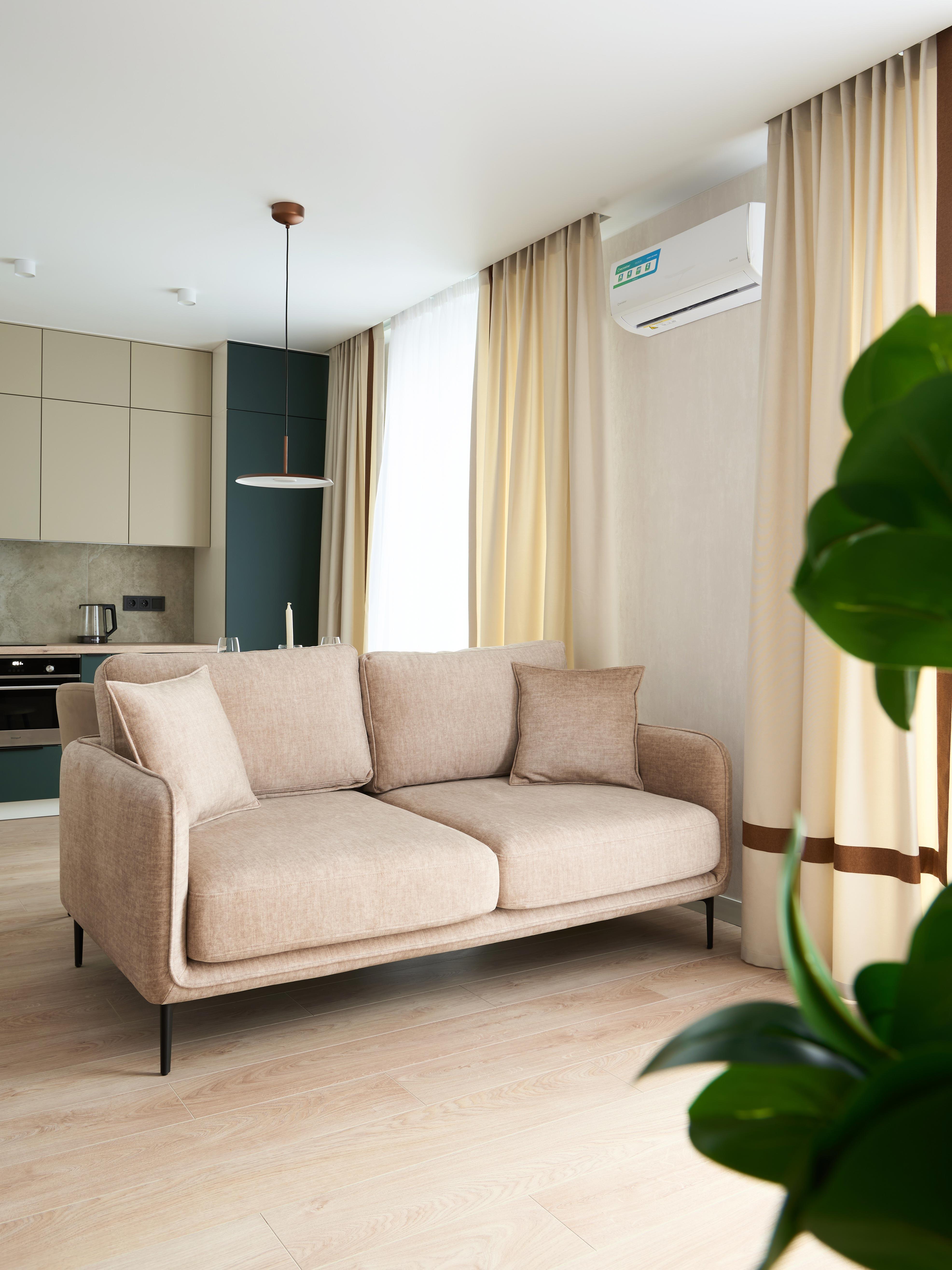 установлен кондиционер, посудомоечная машина, телевизор 55", индукционная варочная панель, стиральная машина, встроенный холодильник, полноценное спальное место и продуманная система хранения. Из окон открывается вид на Центральный парк, что создаёт ощущение простора и свежести.