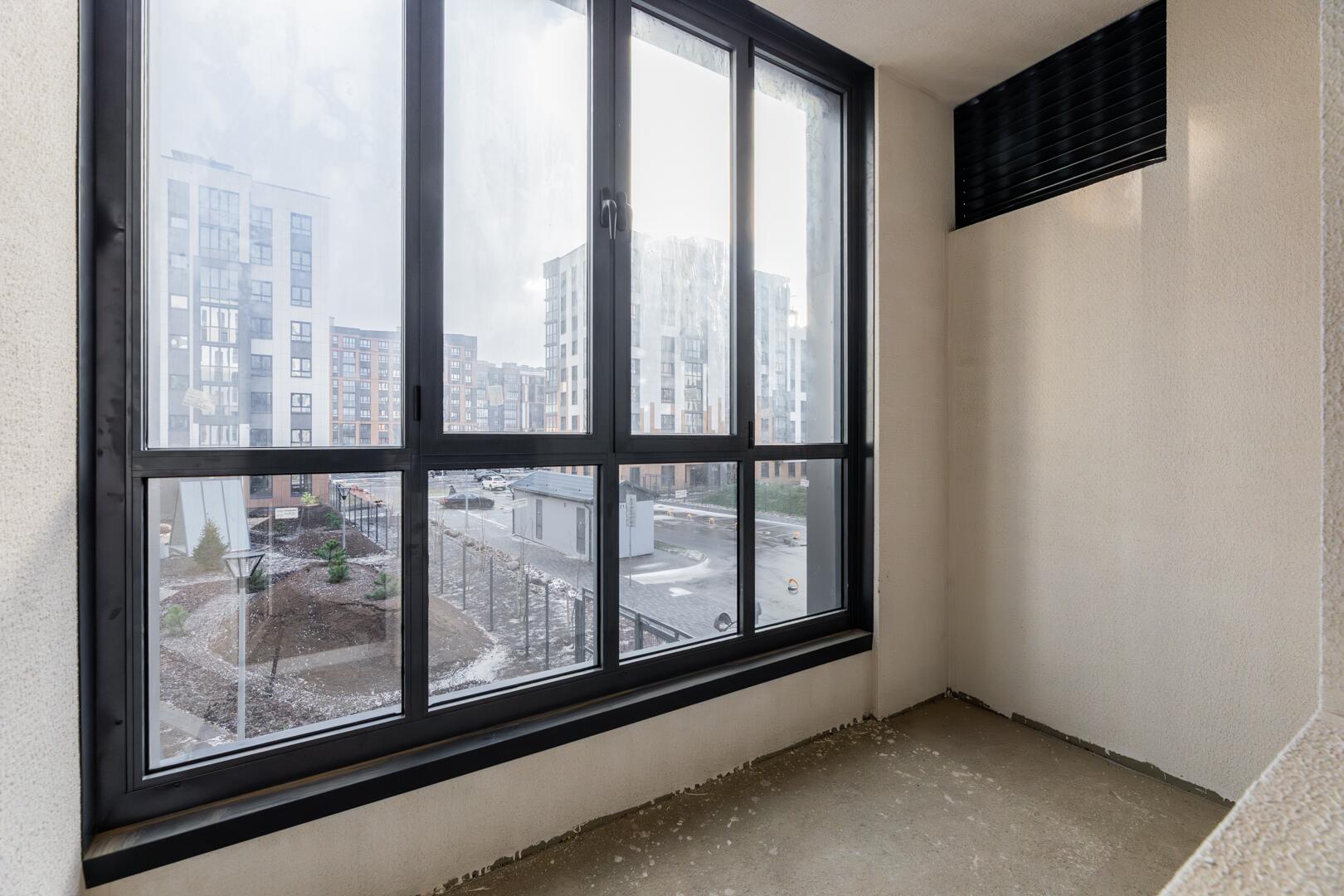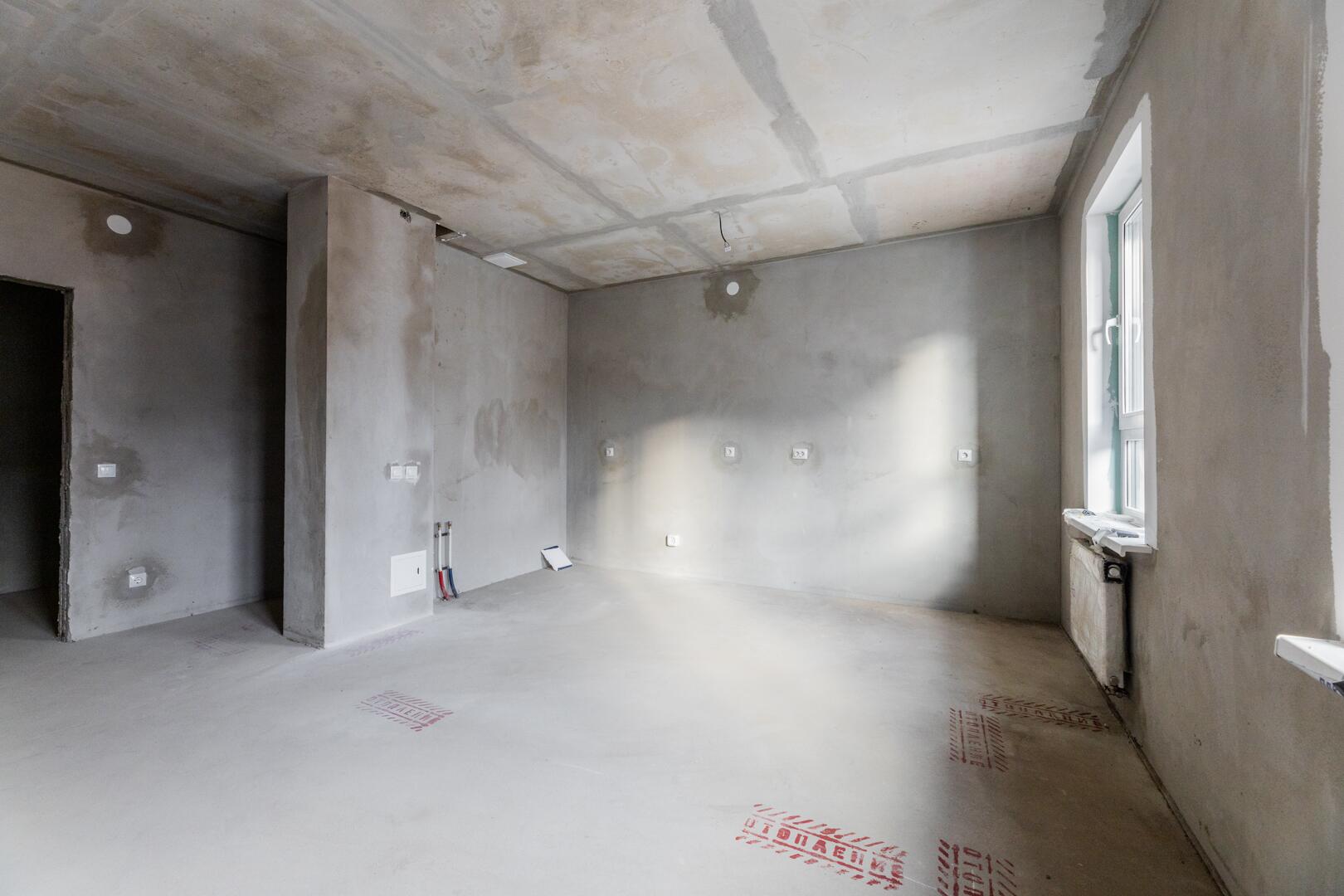 Квартира без чистовой отделки, при этом выполнена стяжка пола и штукатурка стен, установлены оконные блоки из ПВХ-профиля с заполнением двухкамерным стеклопакетом. Разведена электрика с установкой розеток и выключателей, подведено оптоволокно.