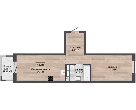 Формат: евродвушка - просторная кухня-гостиная + комната; состояние: без отделки, можно сделать ремонт под себя. Рассрочка от застройщика