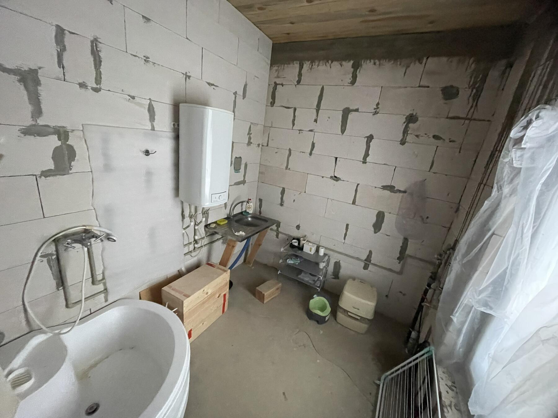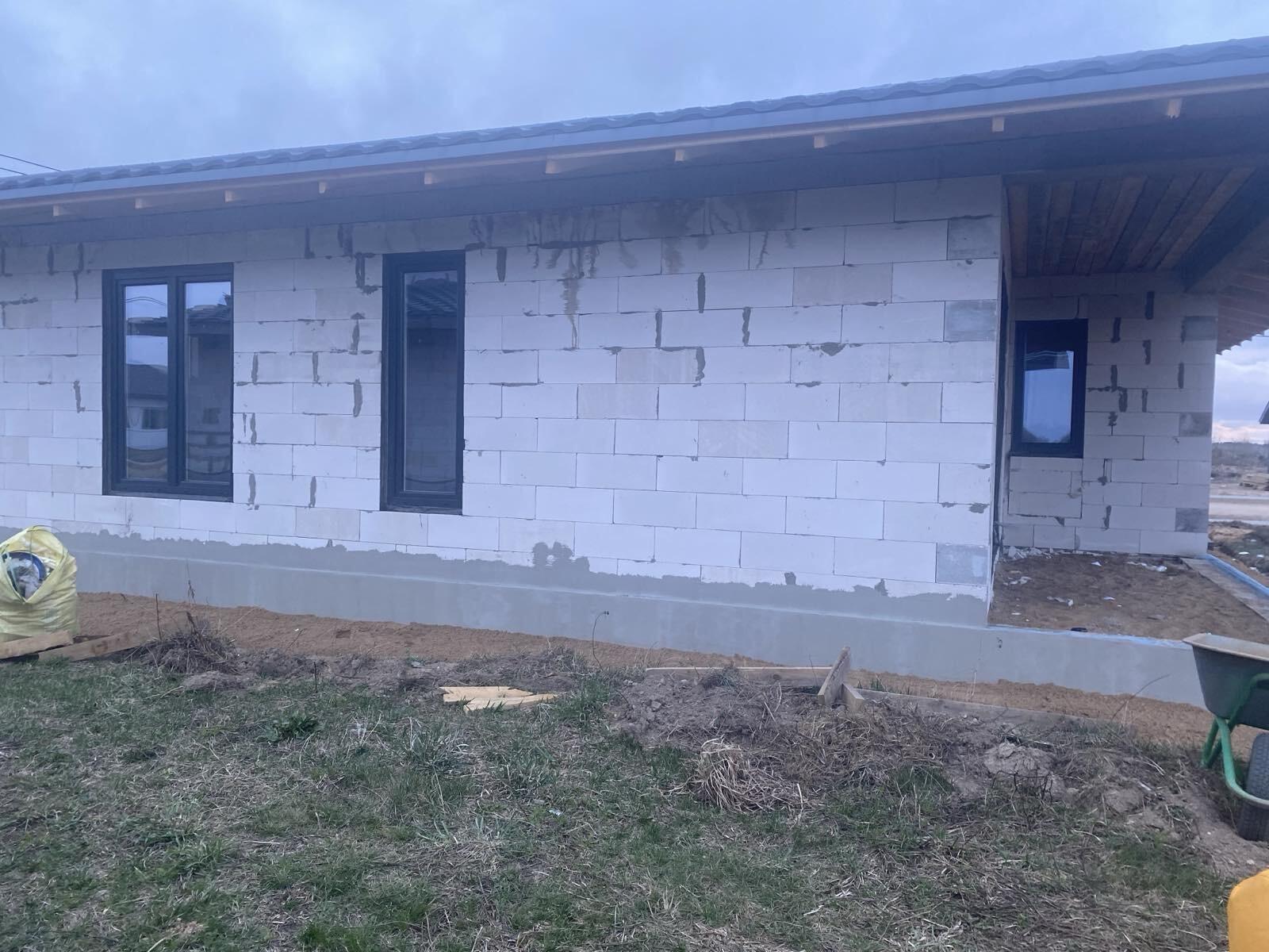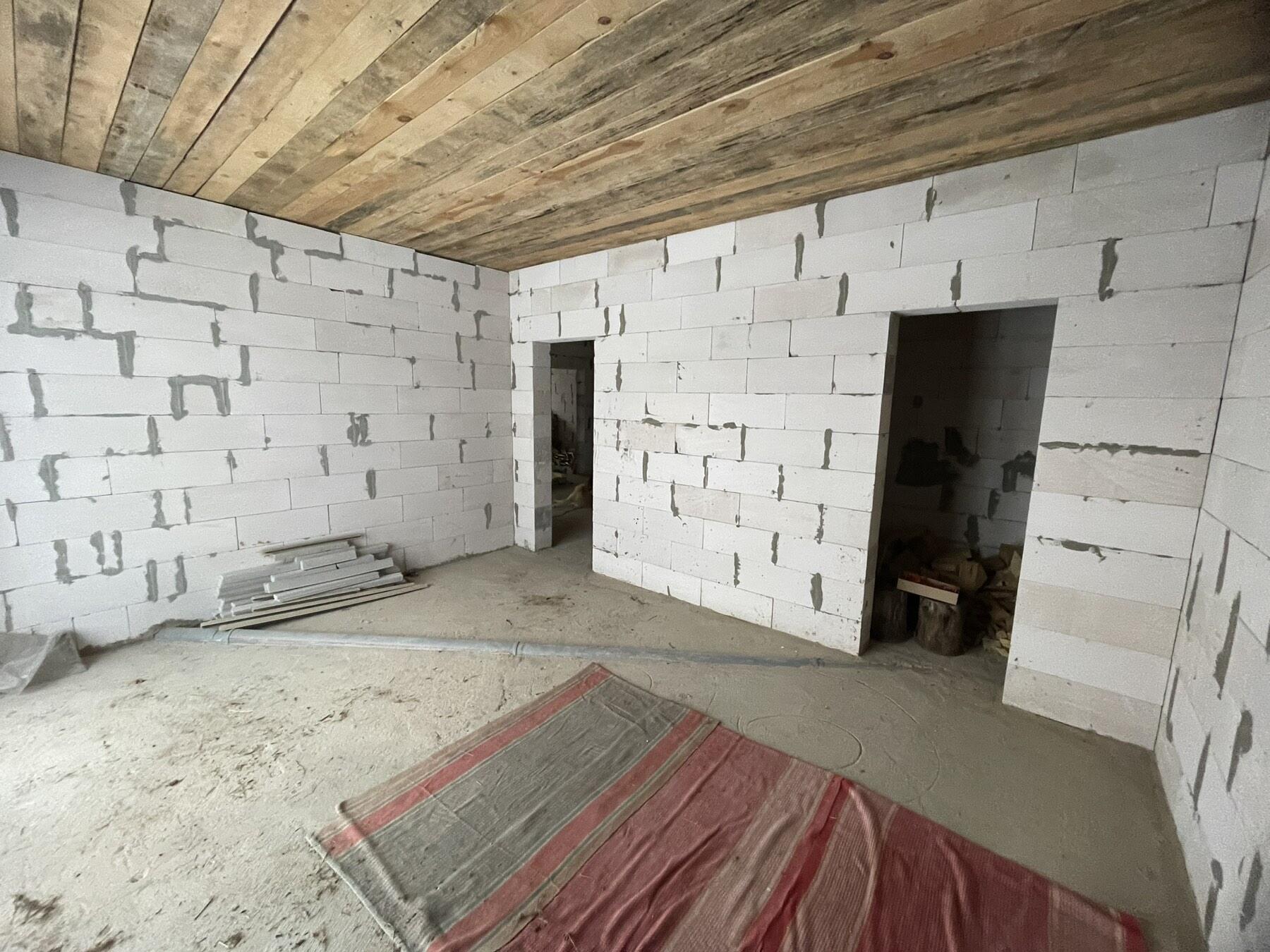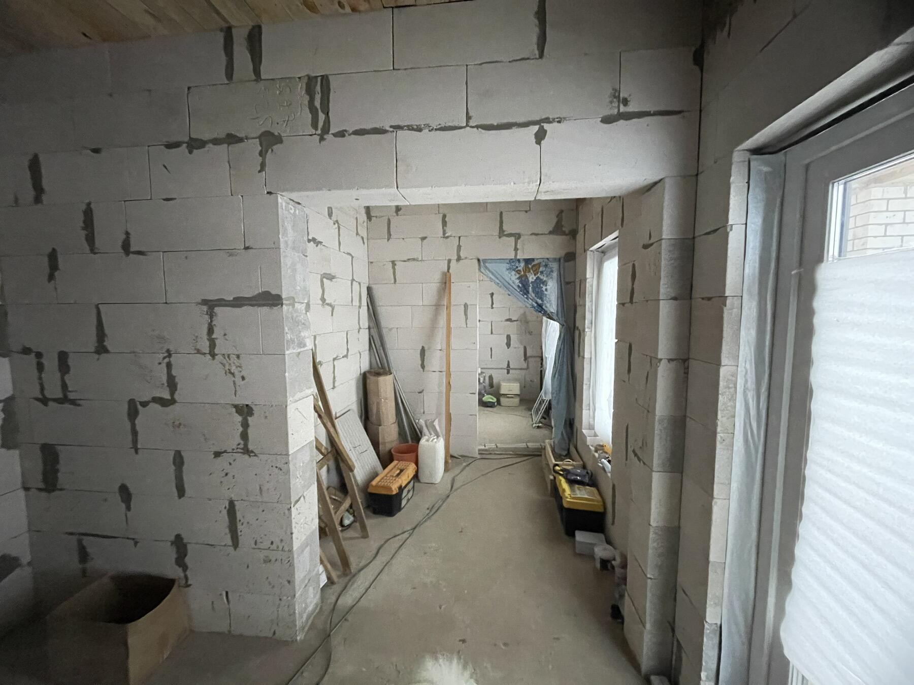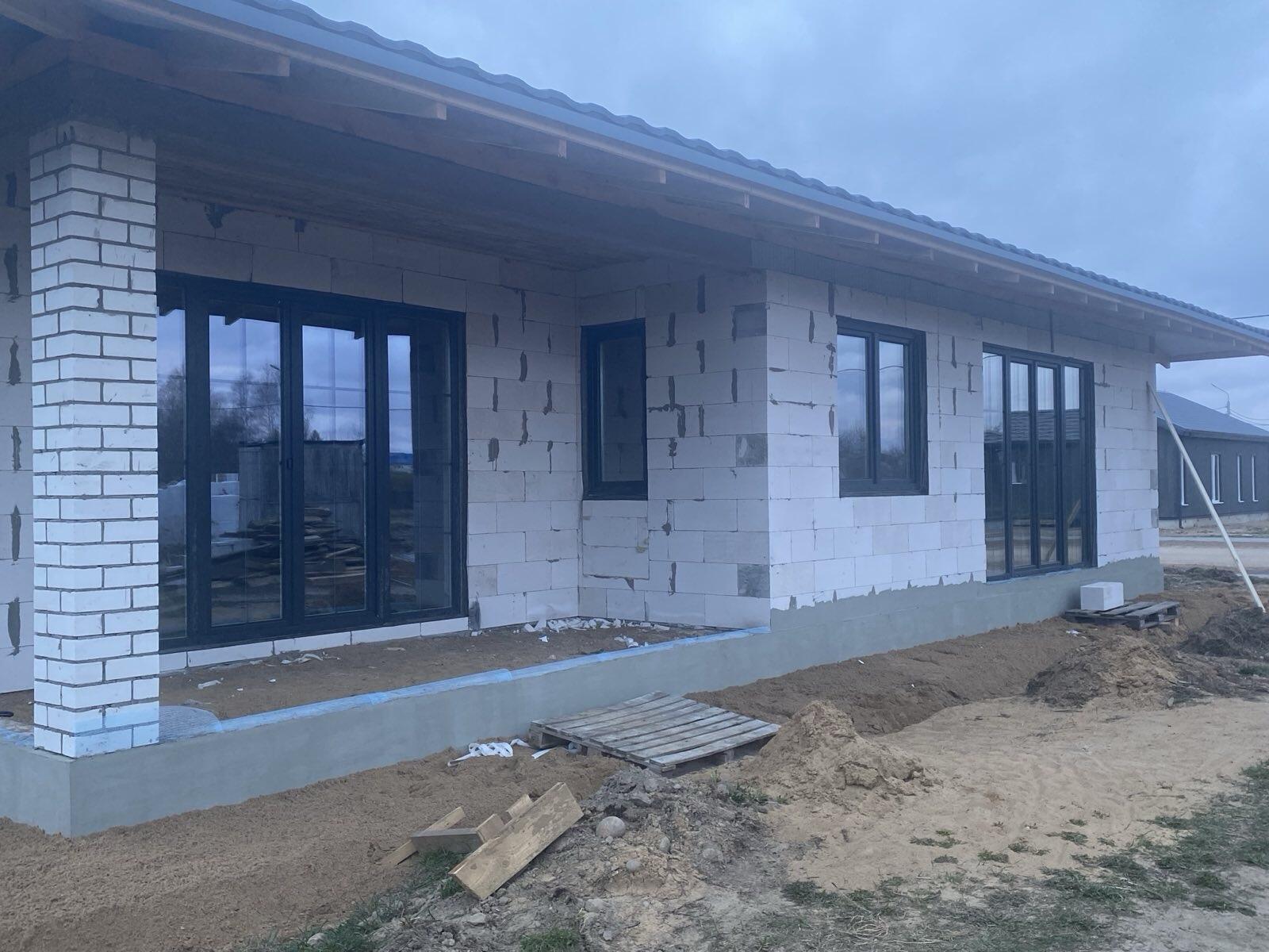 фундамент из бетона высшей марки; стены из газосиликатных блоков 300 мм; кровля — качественная корейская черепица с высоким сроком службы; установлены премиальные окна и входная дверь Rehau, включая французские окна; выполнена стяжка пола, подшиты потолки. Дом светлый, просторный, с продуманной архитектурой — проект заказывался у профессионального архитектора.