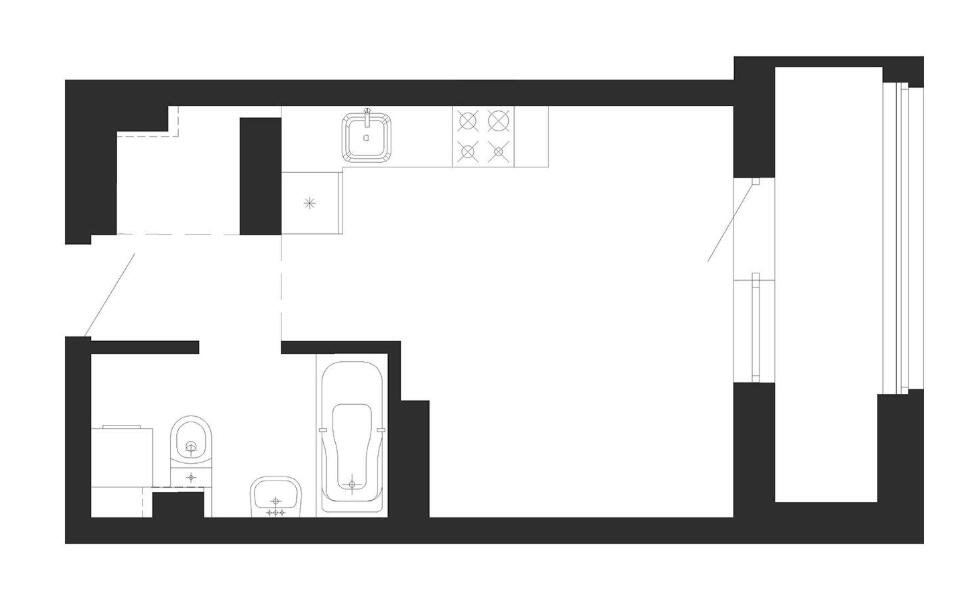 с возможностью устройства одной комнаты (29,91-38,14 кв.м.), с возможностью устройства двух комнат (42,68-53,13 кв.м.), с возможностью устройства трех комнат (62,30-71,35 кв.м.). Высота от пола до потолка – 2,67 м. Большинство бизнес-апартаментов имеют панорамные окна, в каждом – лоджии.