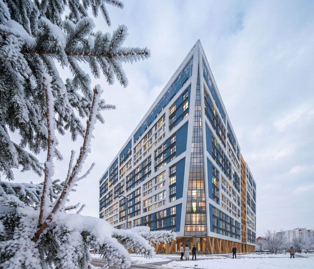 Дизайнерское решение фасадов в сочетании с запоминающимся силуэтным решением застройки будет впечатлять с различных точек прилегающей местности и города.