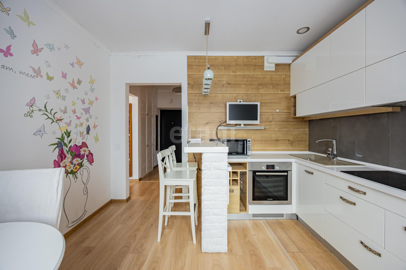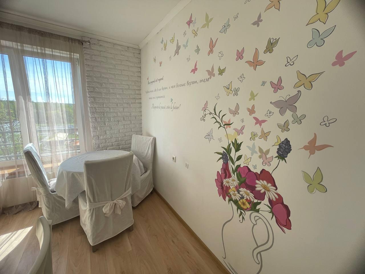 Особая гордость квартиры – кухня с эксклюзивной ручной росписью. Это не просто интерьер, а художественный акцент, который делает пространство уникальным и подчеркивает индивидуальность владельца. Здесь хочется принимать гостей, создавать кулинарные шедевры и наслаждаться моментом. Французское окно, добавляющее пространству легкости и света, когда оно открыто, кухня «дышит», сливаясь с окружающей зеленью, а пространство расширяется, давая ощущение просторной летней террасы. Идеально для семейных обедов и вечерних посиделок с друзьями