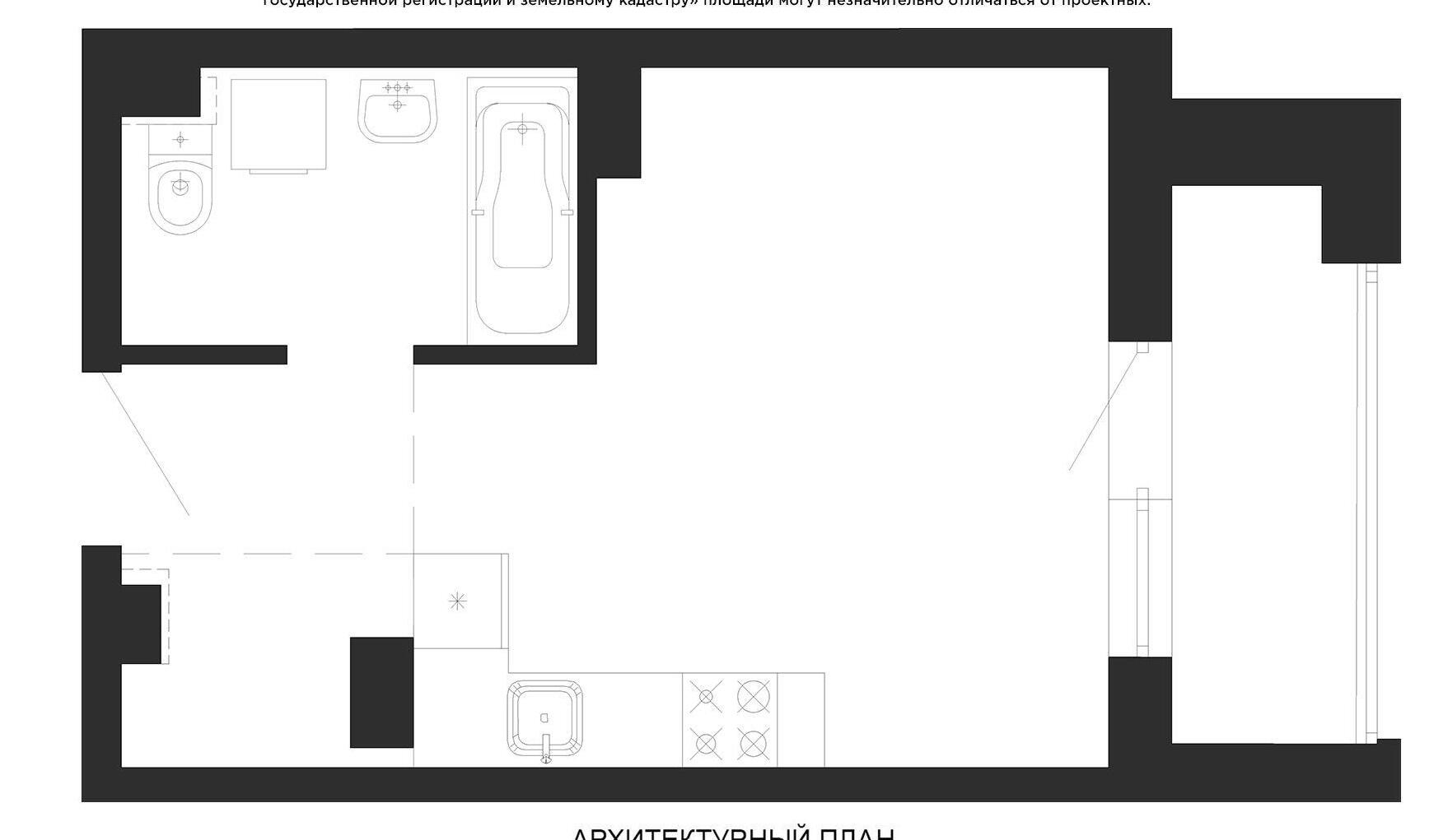 с возможностью устройства 1ой комнаты (29,91−38,14 кв.м.), с возможностью устройства 2ух комнат (42,68−53,13 кв.м.), с возможностью устройства 3ех комнат (62,30−71,35 кв.м.). Высота от пола до потолка — 2,67 м. Большинство бизнес-апартаментов имеют панорамные окна, в каждом — лоджии.
