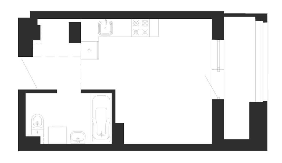 с возможностью устройства одной комнаты (29,91-38,14 кв.м.), с возможностью устройства двух комнат (42,68-53,13 кв.м.), с возможностью устройства трех комнат (62,30-71,35 кв.м.). Высота от пола до потолка – 2,67 м. Большинство бизнес-апартаментов имеют панорамные окна, в каждом – лоджии.