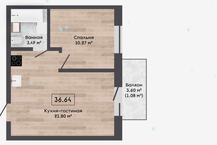 Квартира с отделкой Basic и кладовой 2,84м2.