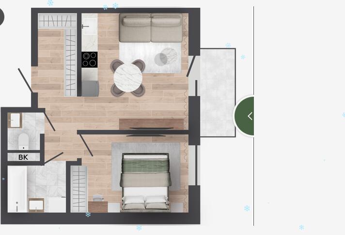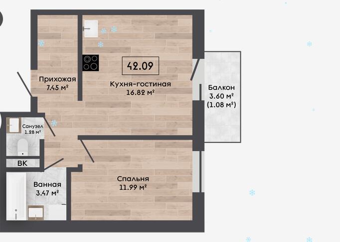 Квартира с отделкой White Box Basic и кладовой 3,34м2.