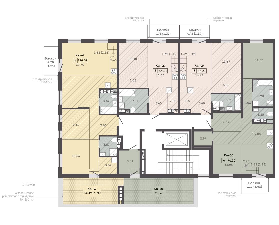 3 подъезда (этажность 5–6–5)