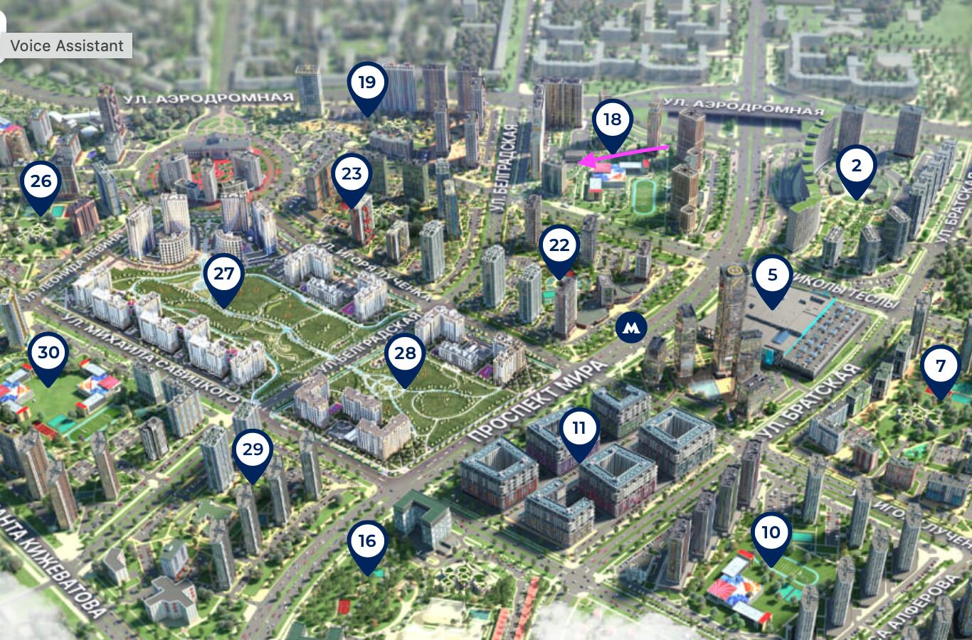 В шаговой доступности расположена станция метро "Аэродромная".
