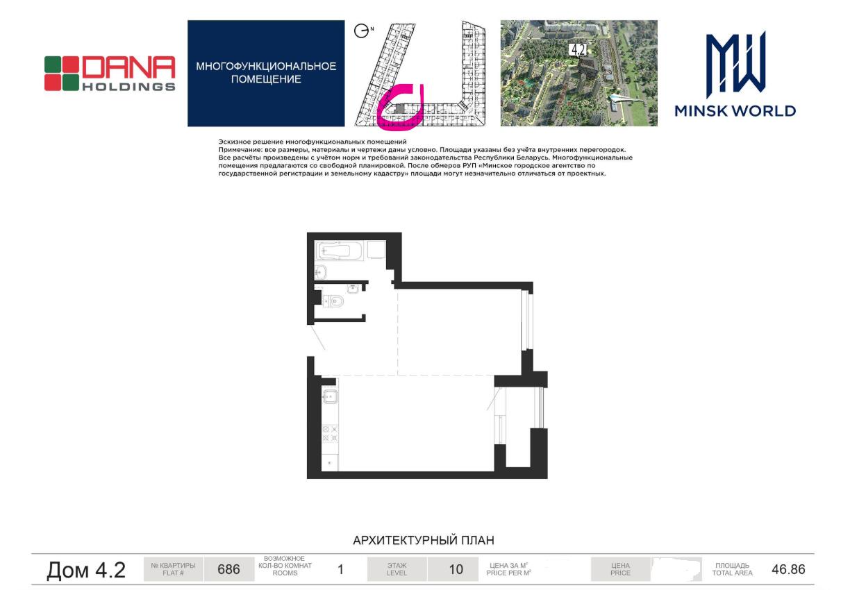 Главное Преимущество: Статус «Два В Одном»Это больше, чем просто недвижимость. Это законный инструмент для оптимизации вашей жизни и дел:• Для семьи: Официальная регистрация по месту жительства (прописка).• Для бизнеса: Возможность регистрации юридического лица прямо в ваших апартаментах.*Забудьте об аренде фиктивных офисов — ваш юридический адрес теперь там же, где и ваш дом.* Инфраструктура Премиум-Класса«Эверест» спроектирован как автономная экосистема для активных людей:• Деловая среда: Первый этаж — галерея коммерческих помещений. Ваши партнеры, кофейни и сервисы — в паре шагов на лифте.• Лобби с характером: Дизайнерское пространство с консьерж-сервисом и уютной зоной ожидания для ваших гостей и клиентов.• Транспортная свобода: Двухуровневый подземный паркинг на 239 мест. Мы предусмотрели всё: от станций зарядки электромобилей до надежных боксов для хранения велосипедов и мототехники. Ваш «Белый Холст» (Технические Параметры)Мы создали идеальный конструктив, чтобы вы не переплачивали за демонтаж чужих решений:• Объем и свет: Потолки 2,7 м и свободная планировка позволяют создать как открытый open-space офис, так и уютную семейную резиденцию.• Качество базы: Надежный каркас с заполнением силикатными блоками гарантирует тишину и тепло.• Готовность: Апартаменты сдаются в формате Shell & Core (без штукатурки и разводки электрики) — вы сами решаете, где будет каждая розетка и перегородка.• Сервис: Бесшумные скоростные лифты мировых брендов мгновенно доставят вас в эпицентр событий. Почему Это Выгодно Именно Сейчас?1. Нулевые расходы на аренду офиса: Ваше рабочее место уже включено в жилой фонд.2. Ликвидный актив: Бизнес-апартаменты — самый востребованный и быстрорастущий формат в «Минск-Мир».3. Престиж локации: Ваш бренд автоматически получает статус, находясь в крупнейшем комплексе Европы.«Эверест» — это точка, где работа становится вдохновением, а дом — продолжением успеха.