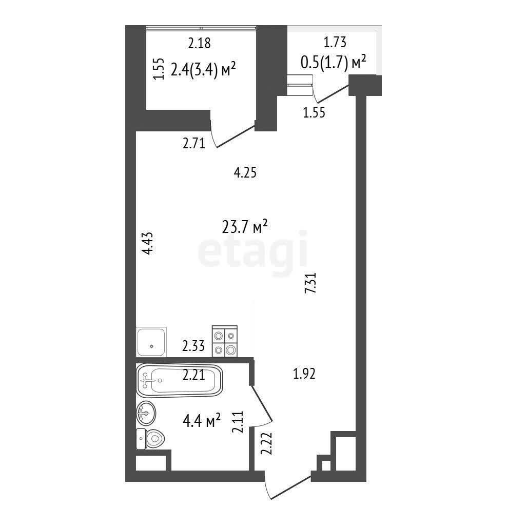Площадь по СНБ 31 м.кв.