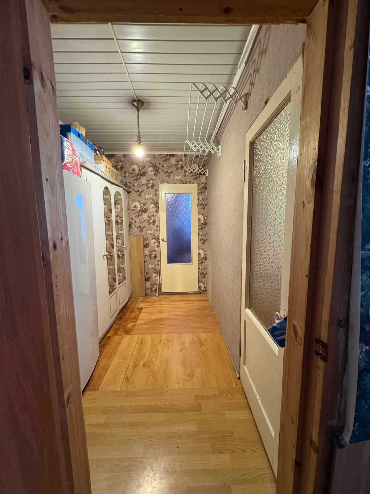 Материал полов комнат - дерево, кухня – кафель (теплый пол).