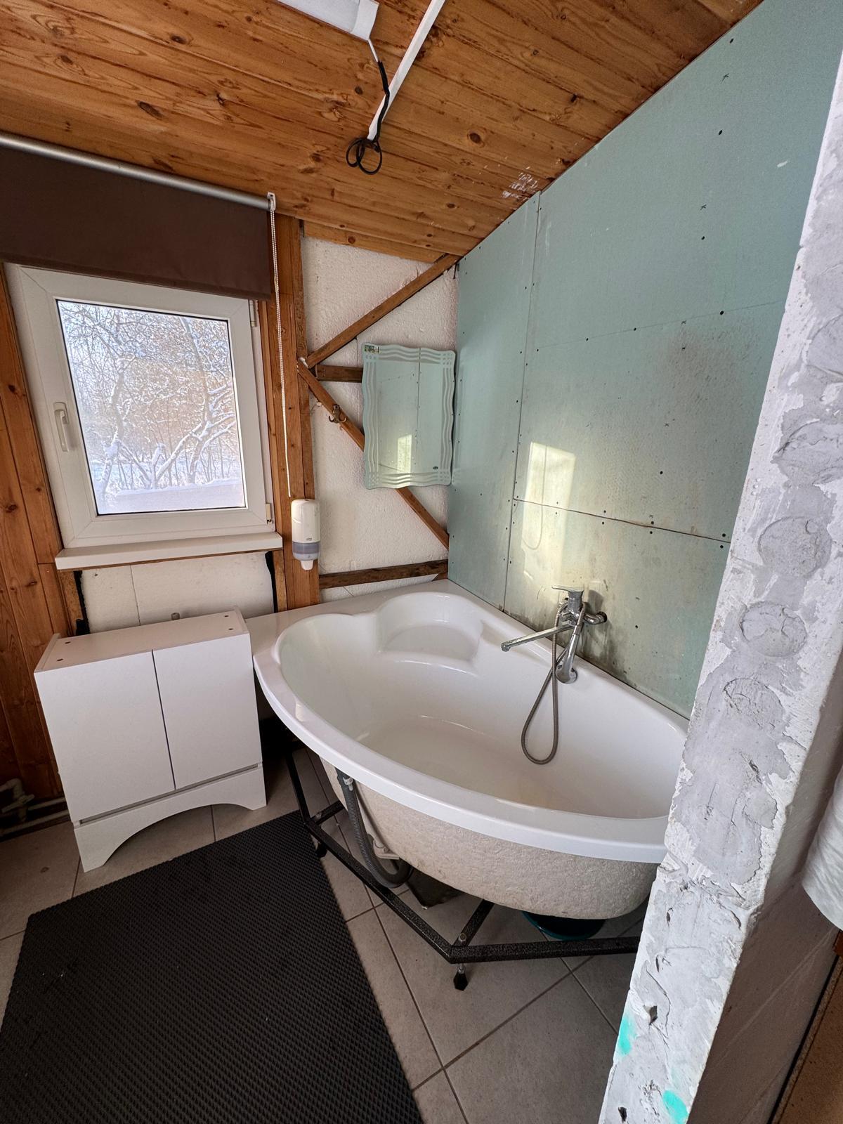 - место для бани, уже установлен фундамент 5*5м и сваи под террасу;