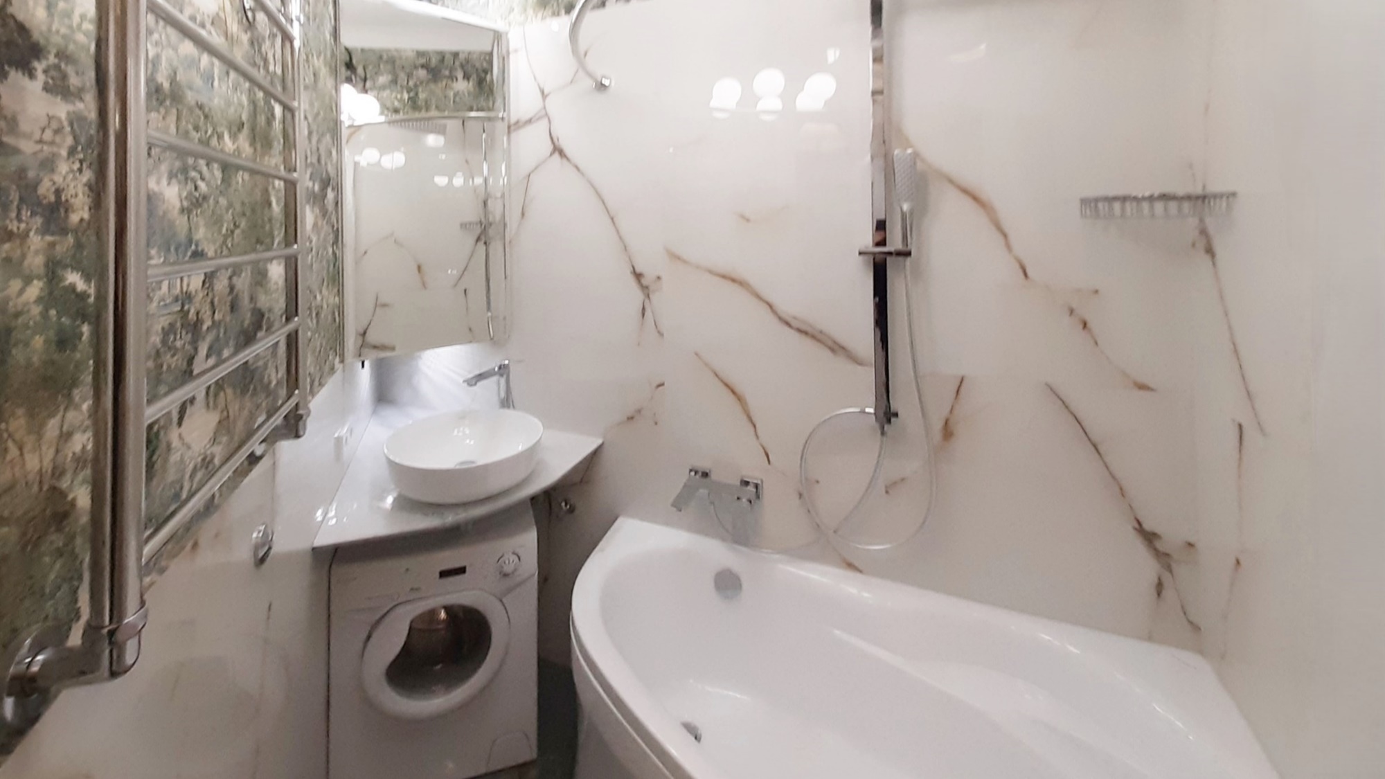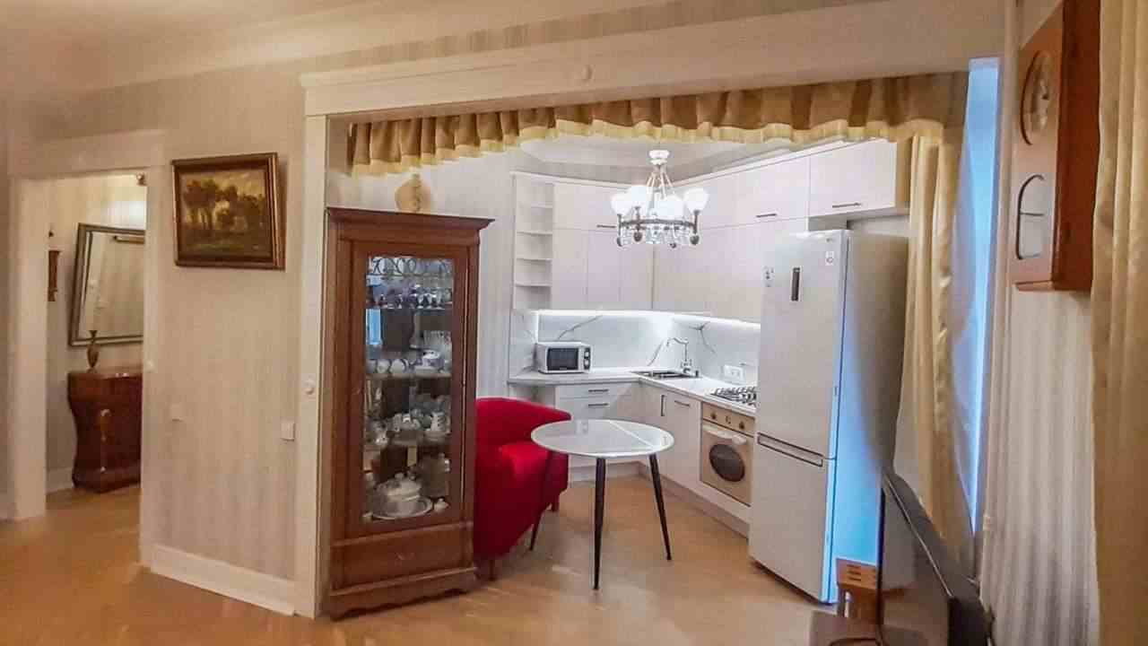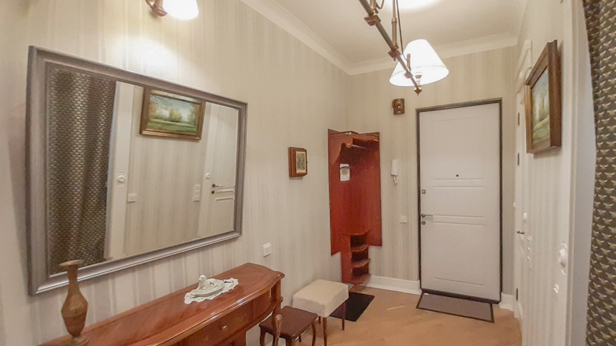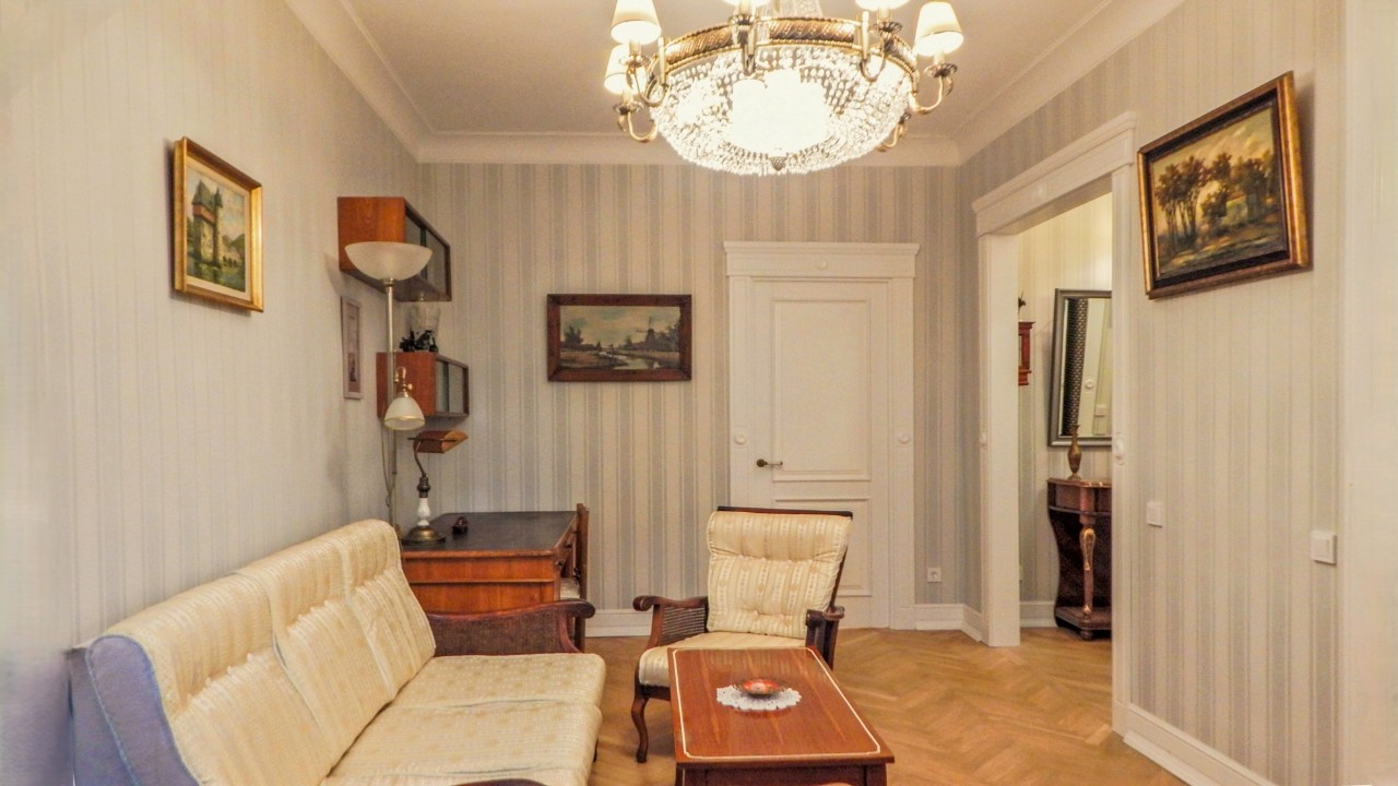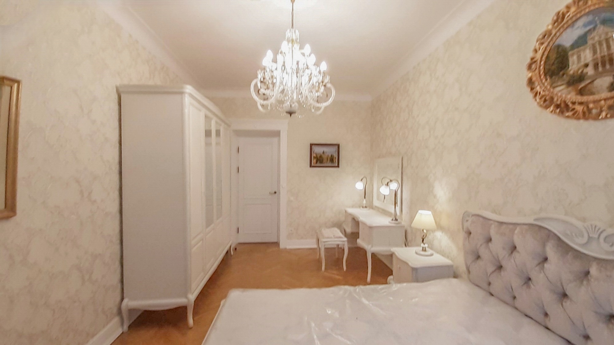 В квартире выполнен новый качественный ремонт, после которого никто не жил. Металлическая входная дверь. Межкомнатные двери (высота до 2.4 метра, толщина в раза больше, чем у обычных). Изготовлены из массива ольхи в классическом стиле по индивидуальному заказу. Хорошие паркетные полы. На потолке сохранена родная лепнина. Установлена качественная сантехника. Вся электрическая проводка заменена на медную.