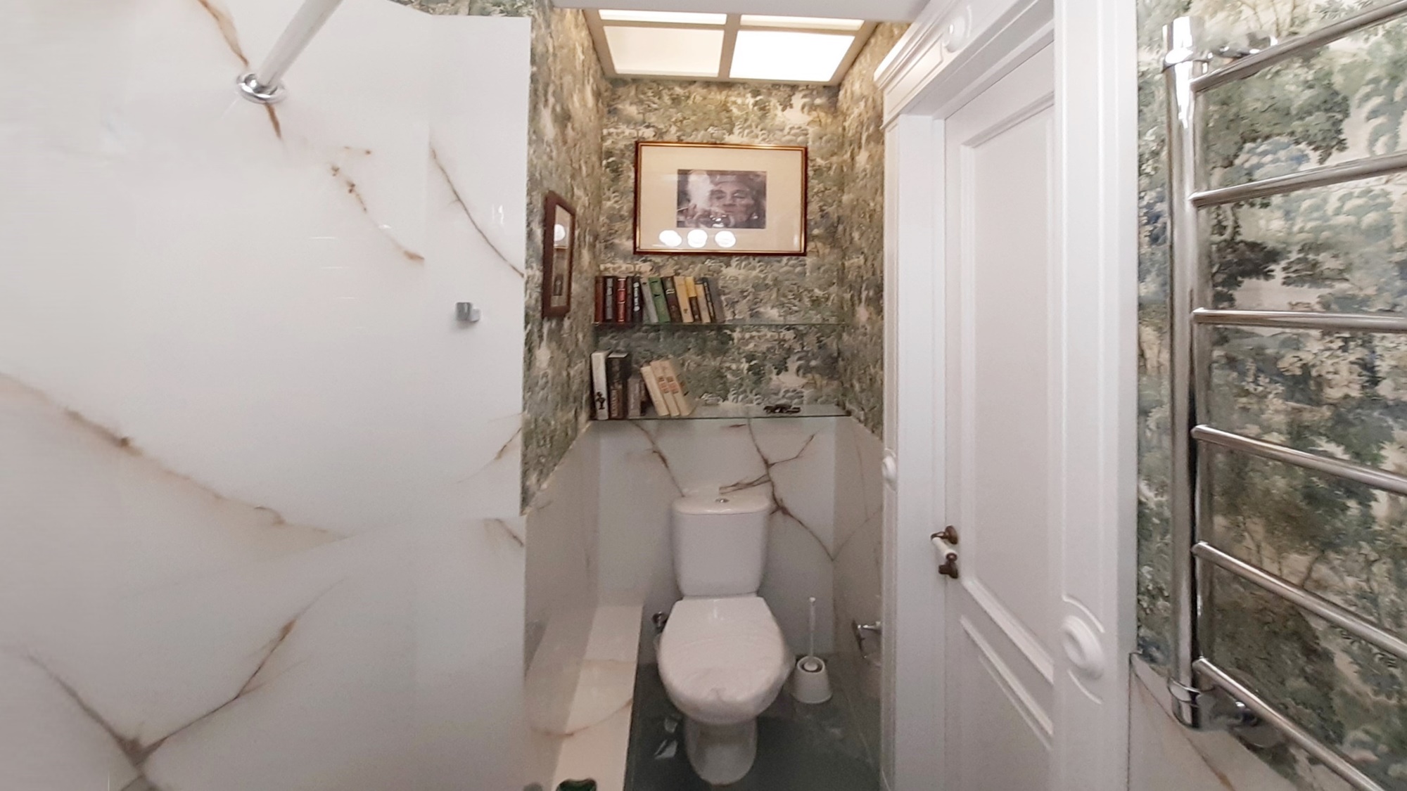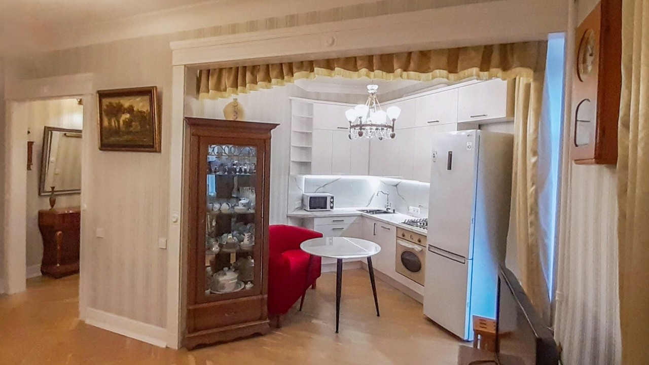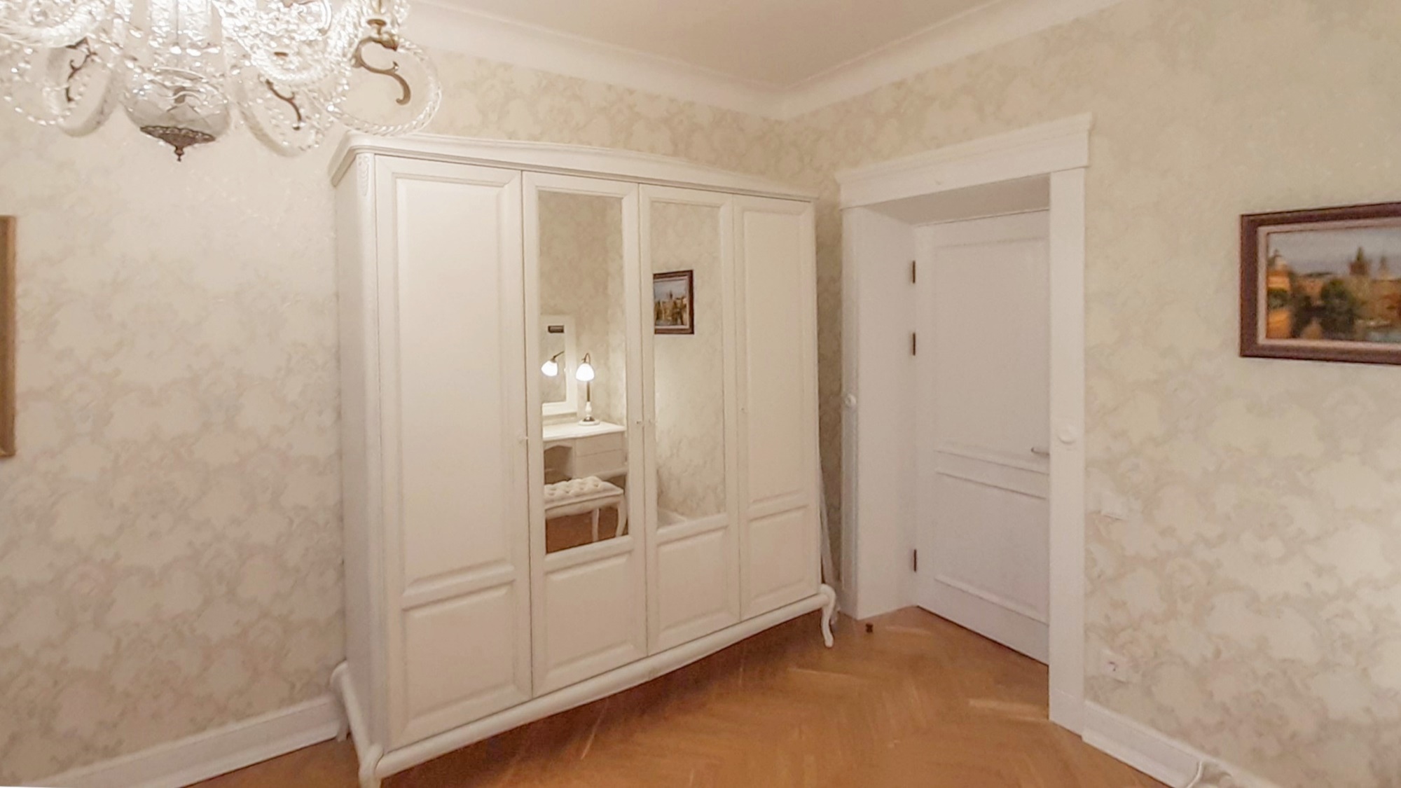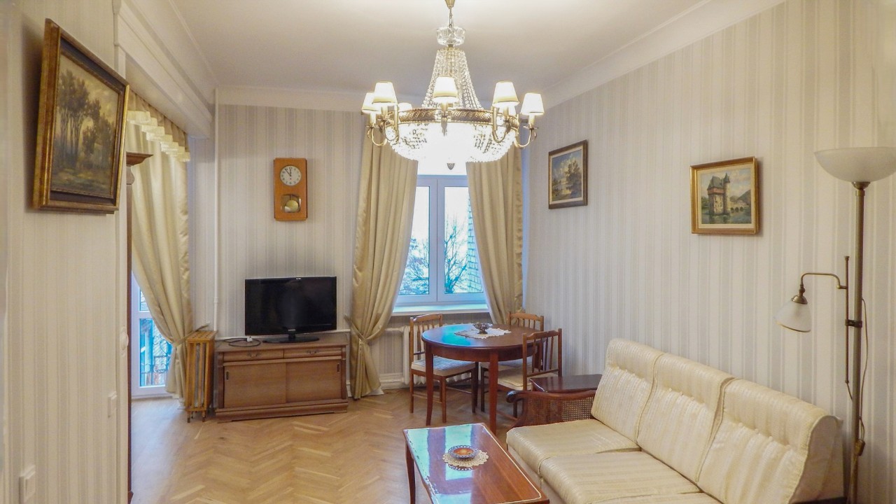 Квартире расположена на 4 этаже 4 этажного кирпичного дома (1956 года), являющегося памятником архитектуры, Плиты перекрытия железобетонные, Квартира очень теплая с хорошей звукоизоляцией. Благодаря большим оконным проемам в ней достаточно света, а высокие потолки 3 метра создают ощущение простора.