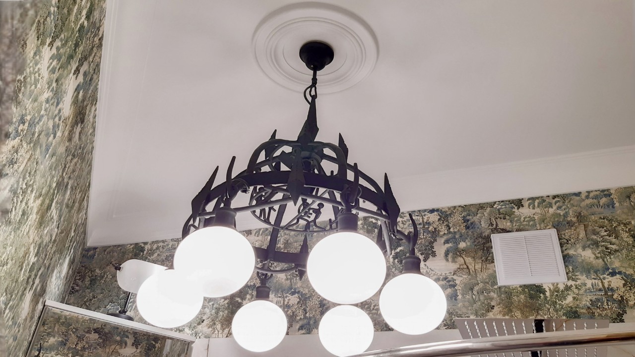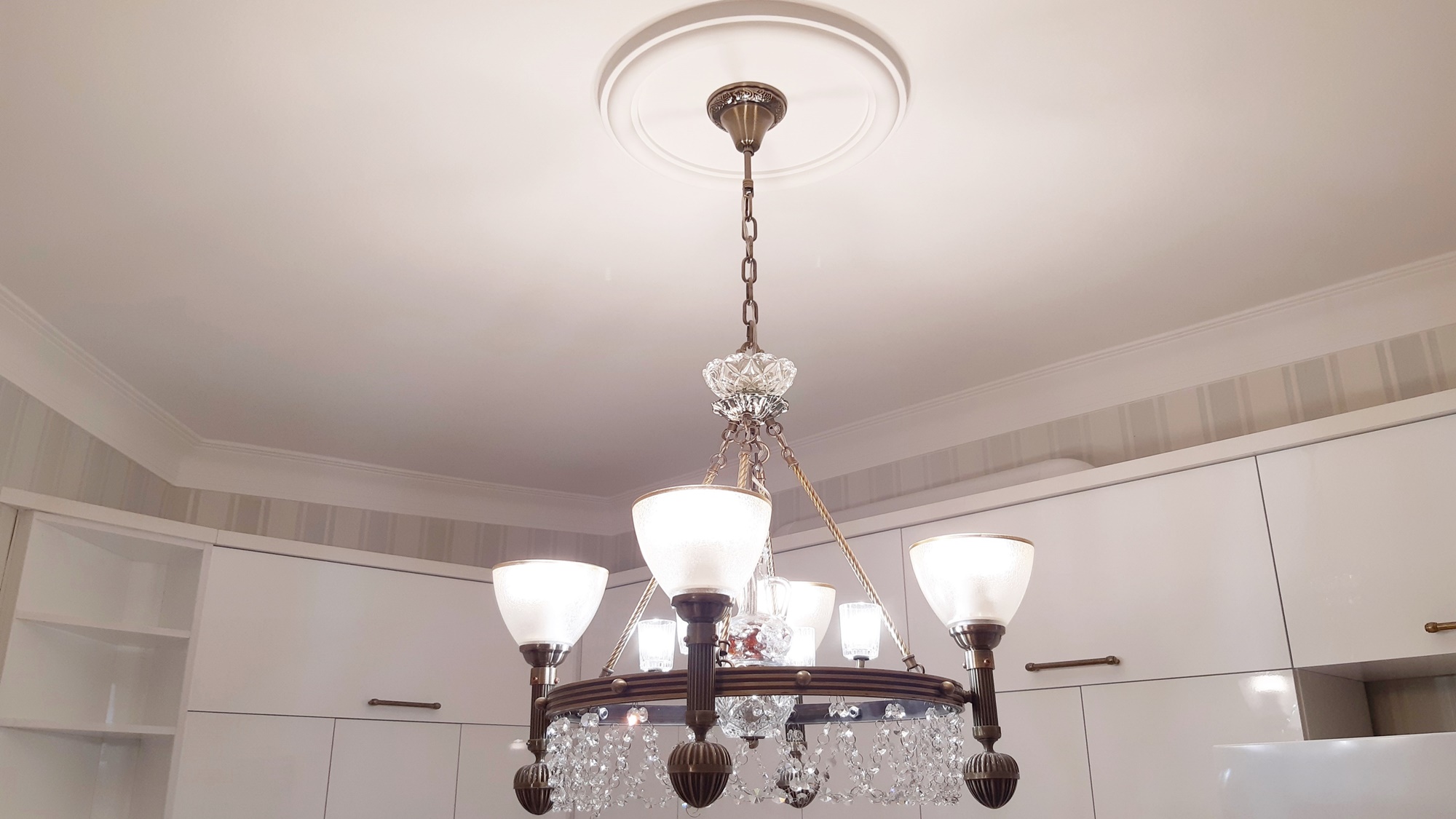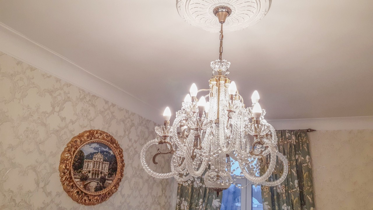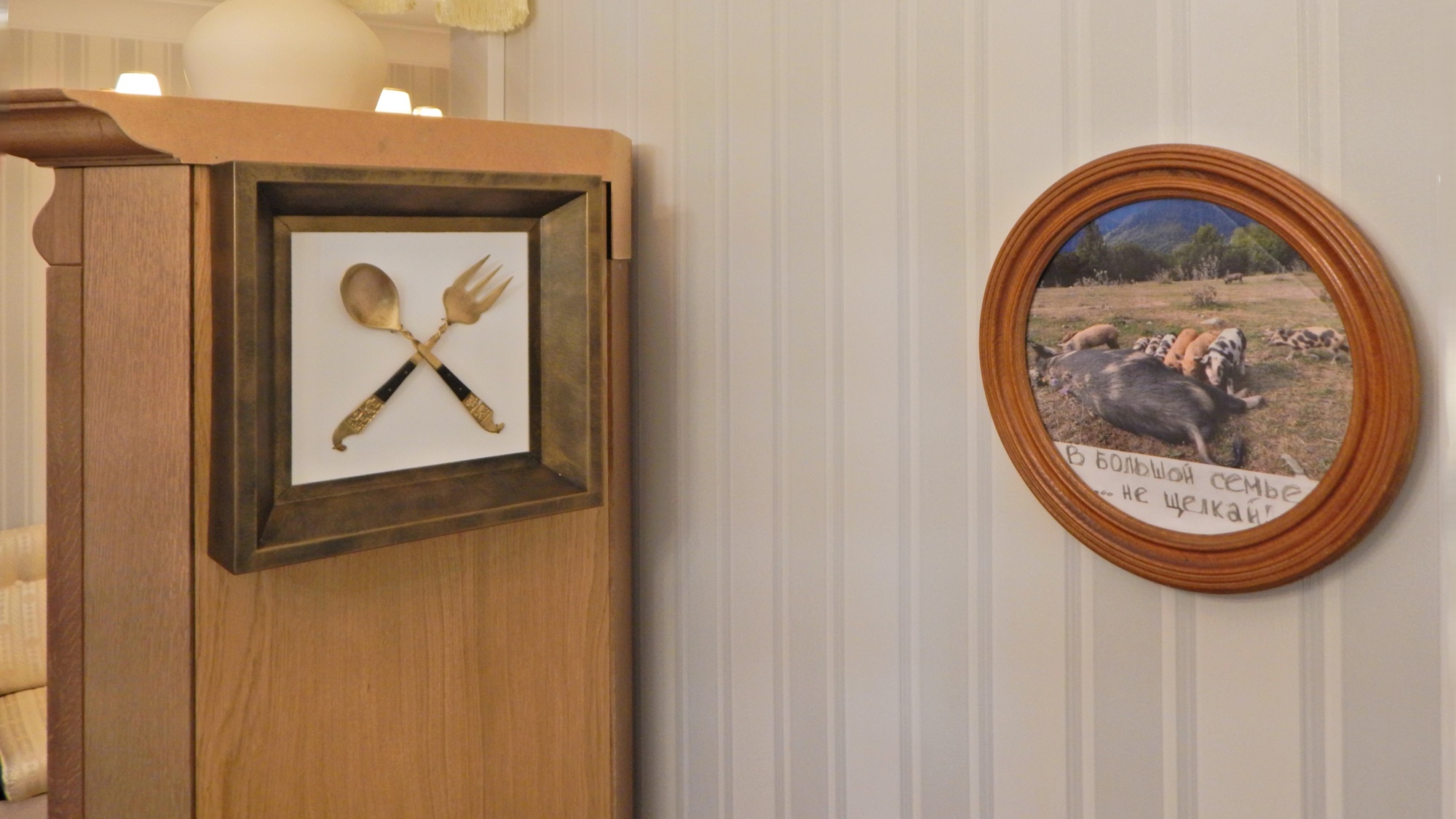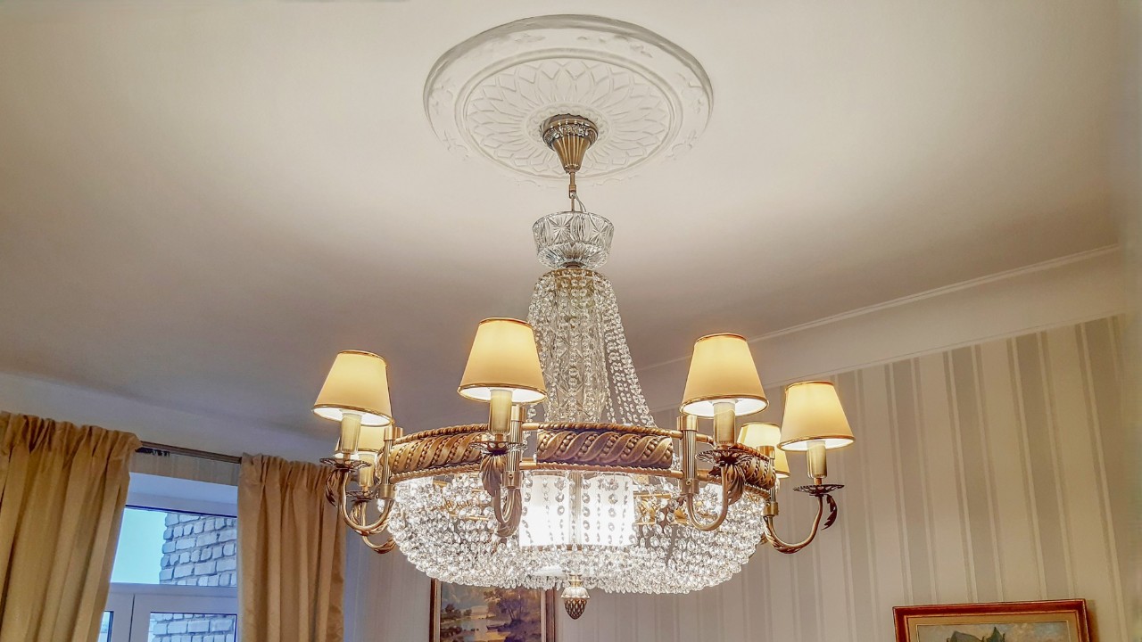 Мебель и интерьеры подобраны в классическом французском стиле. Часть элементов ручной работы, изготовлены по индивидуальному заказу. Люстры, светильники, торшер, бра - авторской работы, сделаны мастером специально для этой квартиры. Звонок и кнопка звонка, люстра в санузле, картина в кухне - все ручной работы (стиль Стимпанк). Часть мебели отреставрирована, в том числе рабочее место писателя. На стене уютно расположились механические часы с запасом хода в две недели,