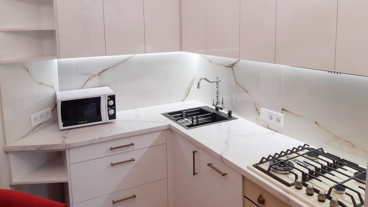 Общая площадь квартиры 56.4м2 (по СНБ 56.7м2), жилая 36.7м2 состоит из просторной спальни 18.8м2 и большой гостиной 17.9м2. уютная кухонная зона 7.8м2, совмещенный санузел 3.4м2, прихожая 8.4м2 с удобной гардеробной, оборудованной местами для хранения. Есть балкон, выходящий в тихий двор.