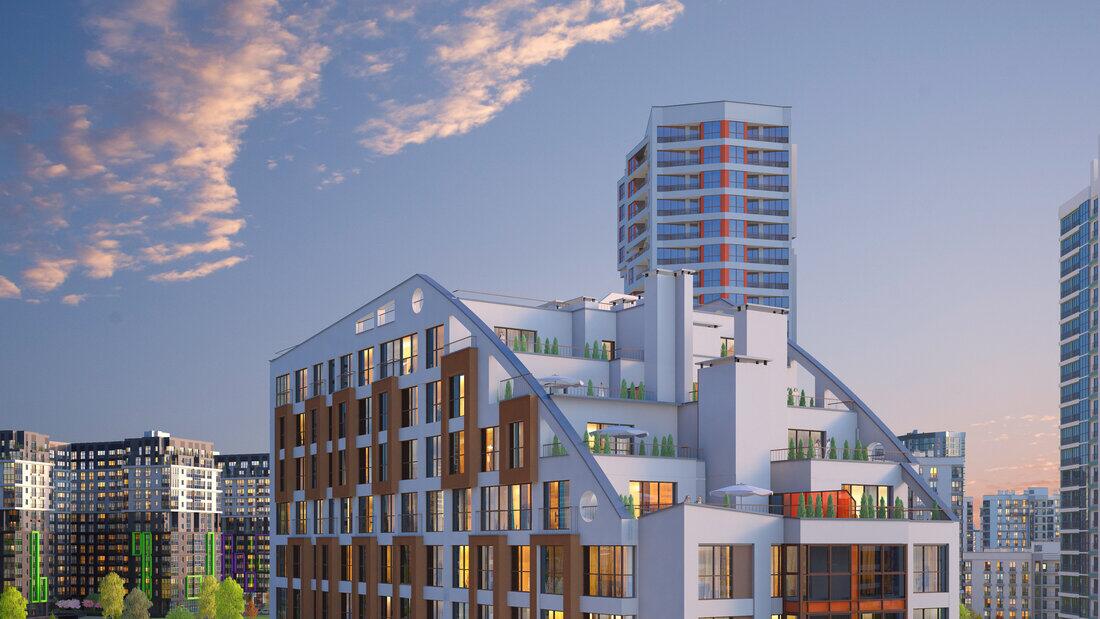 Апартаменты в запроектированы по принципу «свободной планировки» Высота от пола до потолка – 2,67 м. Подземный одноуровневый гараж-стоянка на 239 машино-мест с зарядными станциями для электромобилей, помещениями для хранения велосипедов и мототехники в местах общего пользования. Дизайнерское решение фасадов в сочетании с запоминающимся силуэтным решением застройки будет впечатлять с различных...