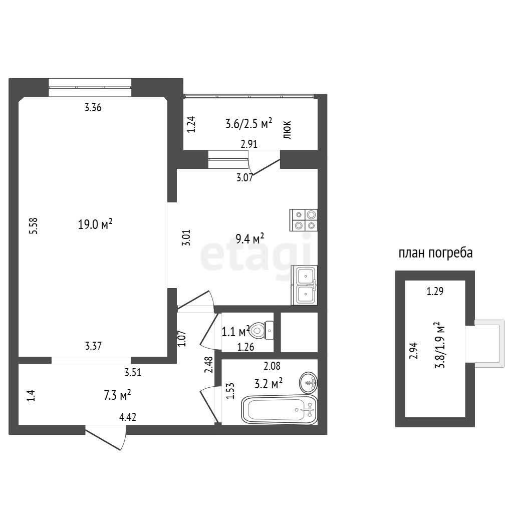 Под балконом — собственное подвальное помещение 3,8 кв.м. с окном, редкое и функциональное дополнение для хранения сезонных вещей или заготовок. Все коммуникации заведены, квартира готова к реализации вашего проекта интерьера без компромиссов.