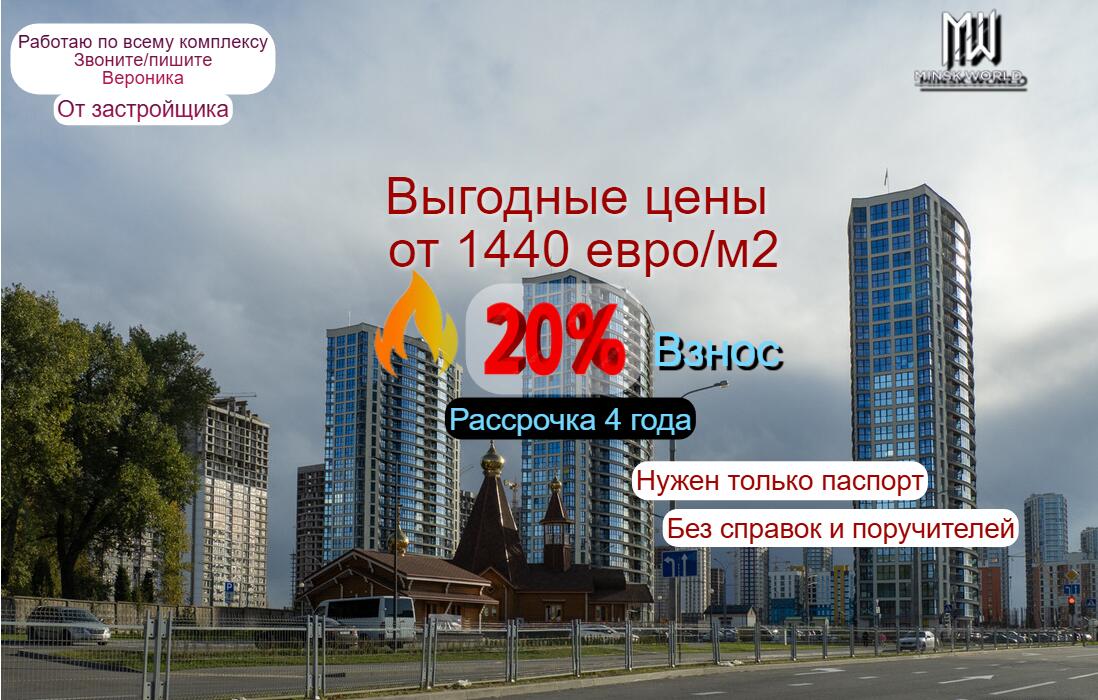 Апартаменты напрямую от застройщика! Дом Эверест! Старт продаж! Выбор планировок и этажей! Расчет рассрочки. Выгодная рассрочка! Цены и наличие актуальны на 07.02.2026. Стать владельцем недвижимости в Minsk World можно: За собственные средства. В рассрочку без справок и поручителей (только паспорт!). Все дома в комплексе каркасно-блочные, от 10 до 25 этажей. Скоростные бесшумные лифты...