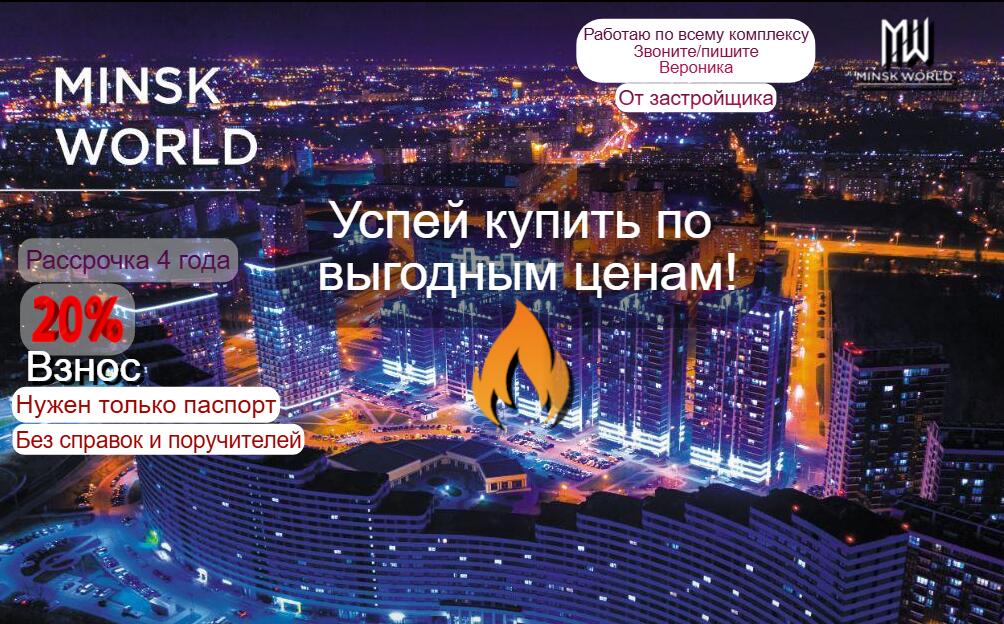 Работаем напрямую от застройщика по партнерской программе (без комиссий)!!! Цены и наличие на 08.02.2026 г. Продадим Вашу квартиру для покупки этой! Стать владельцем квартиры в Minsk World можно: 1. За собственные средства 2. Кредит от 6%. 3. В рассрочку без справок и поручителей (только паспорт!) Все дома в комплексе каркасно-блочные. Скоростные бесшумные лифты импортного производства....