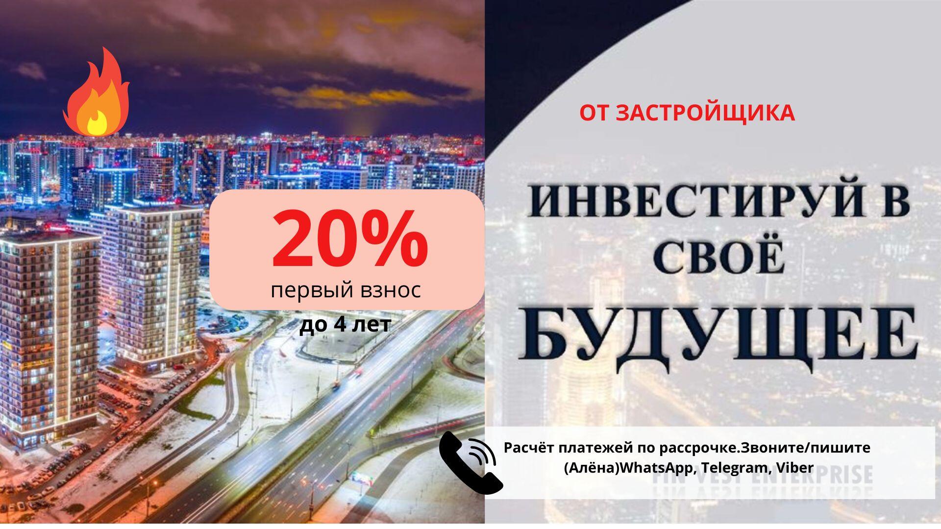 ПРЯМАЯ РАССРОЧКА ОТ ЗАСТРОЙЩИКА! Взнос ВСЕГО от 20%. Планировки и расчёт в Viber.Алёна