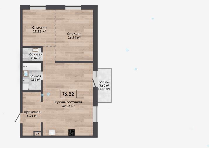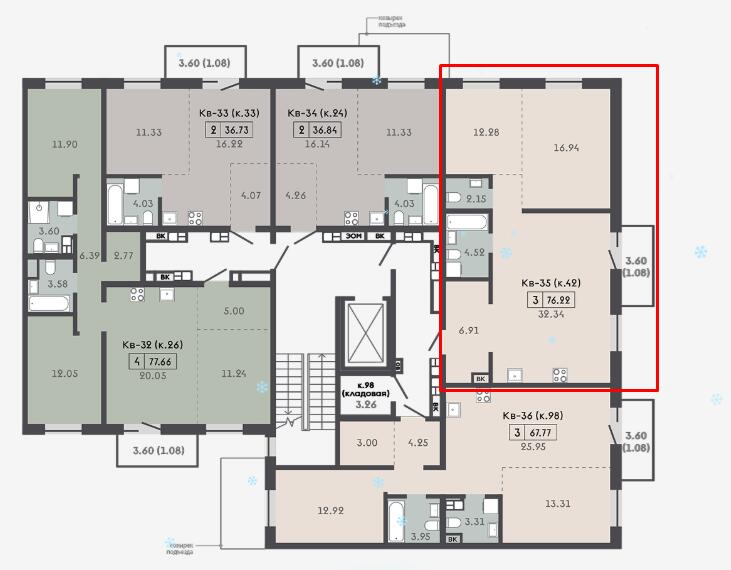 Квартира с кладовой 4,20м2.