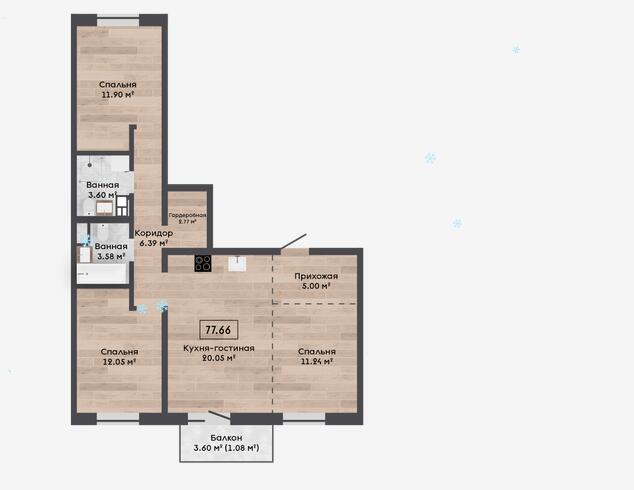 Квартиры с мастер-спальнями, гардеробными, кабинетами.