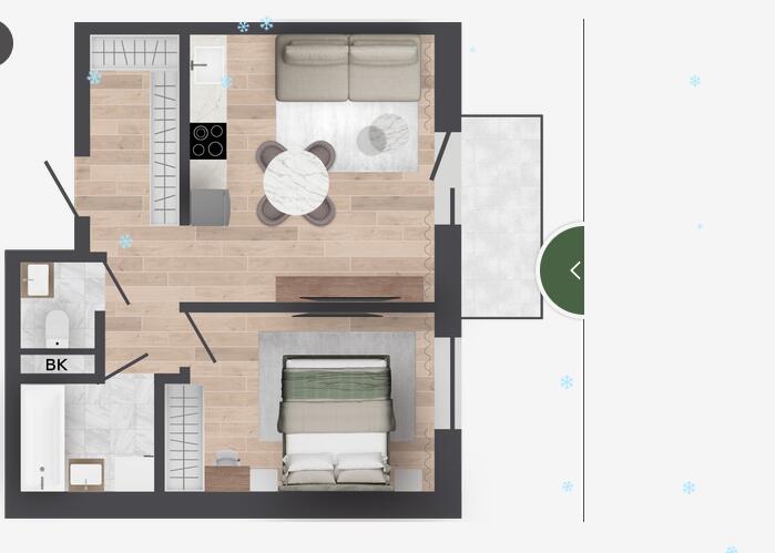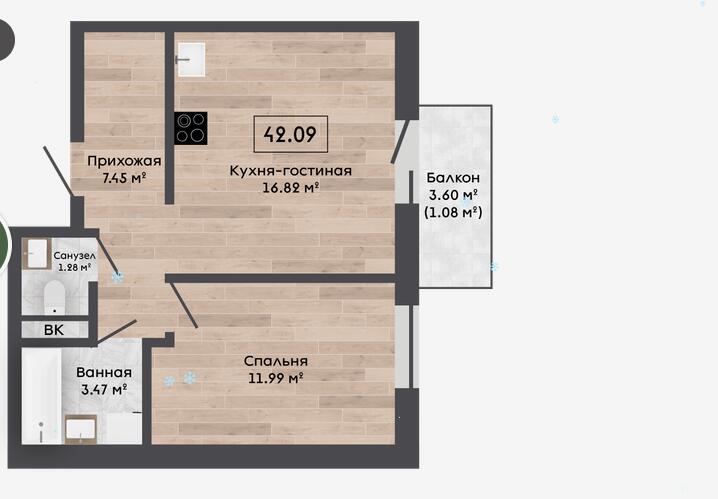 Квартира с отделкой Basic с кухней и кладовой 3,28м2.