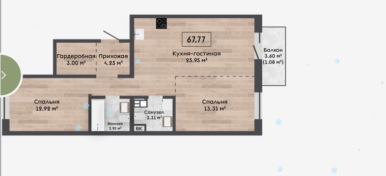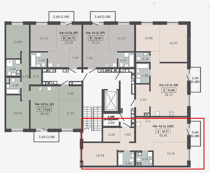 Квартира с кладовой 4,16м2.