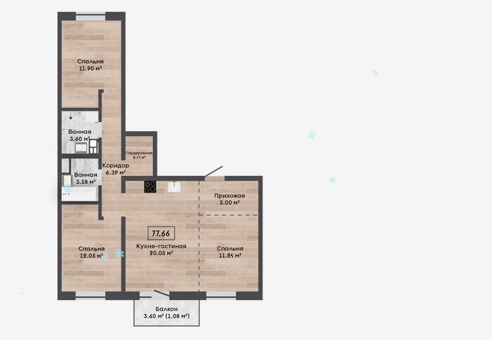Квартиры с мастер-спальнями, гардеробными, кабинетами.